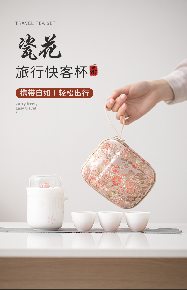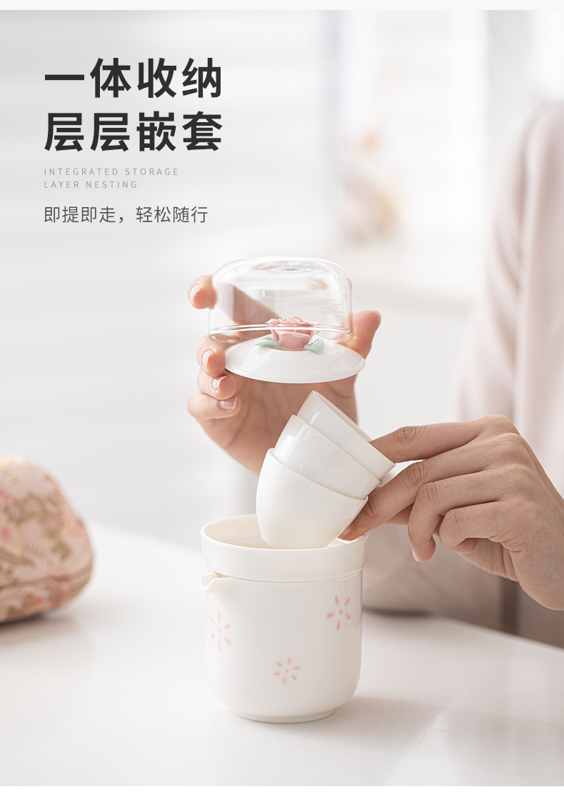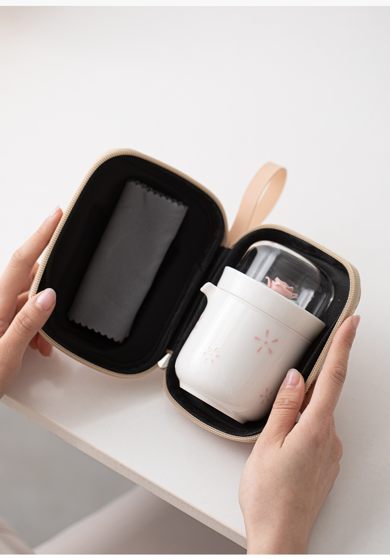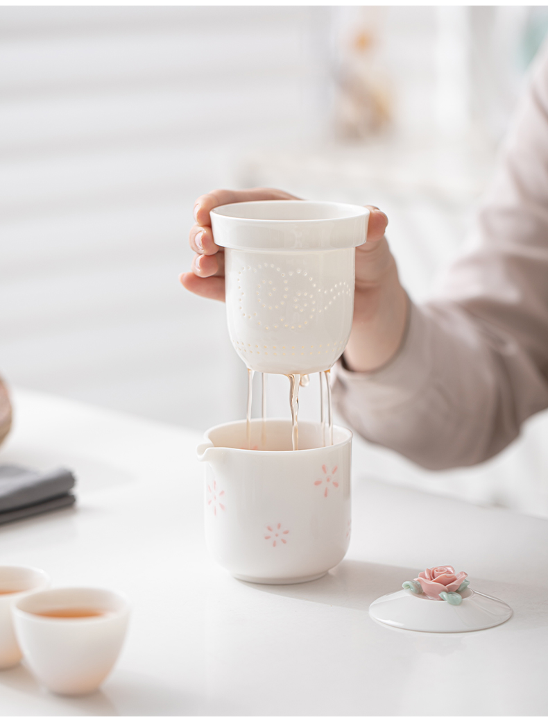 苏氏陶瓷(SUSHI CERAMICS) 粉红佳人便捷旅行茶具 J1188 4头 白色(单位:套)