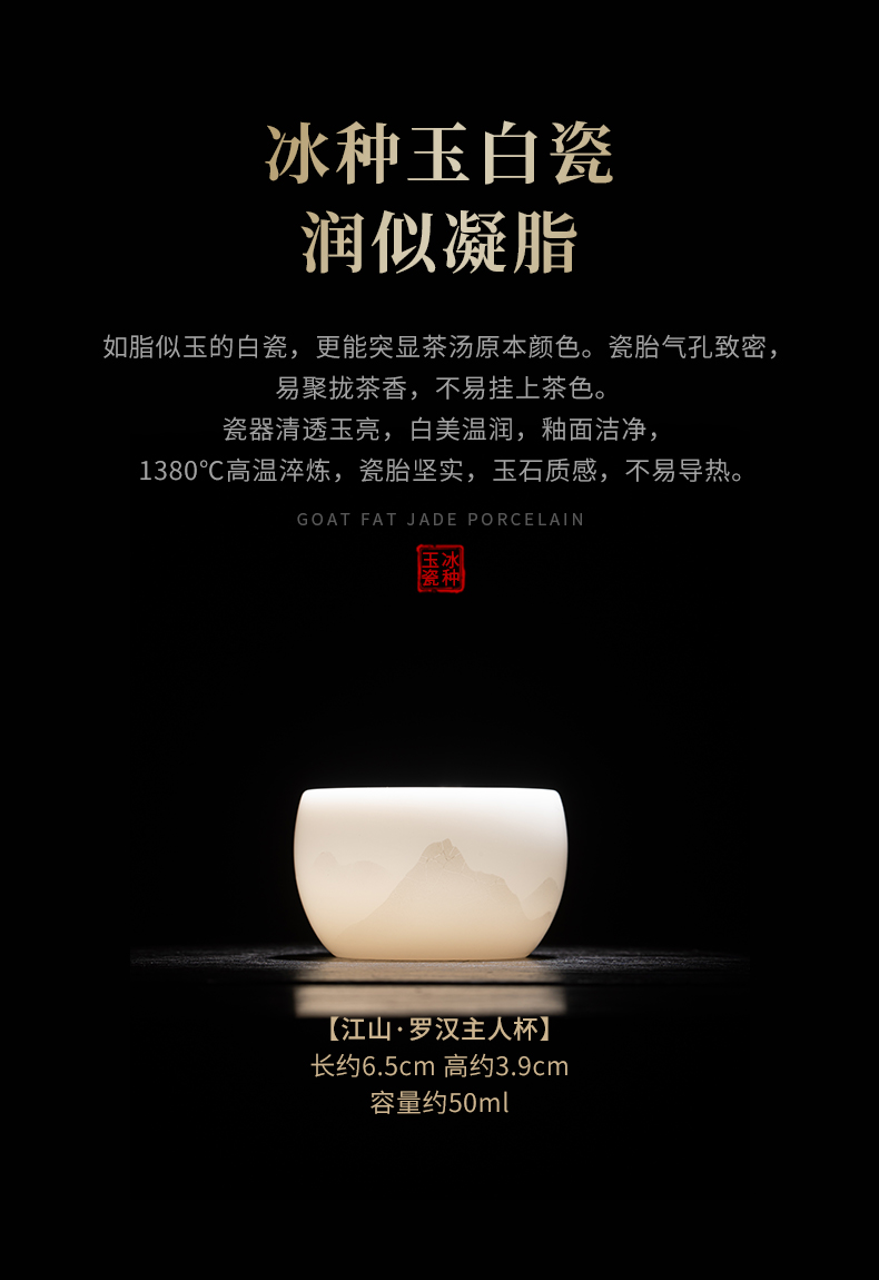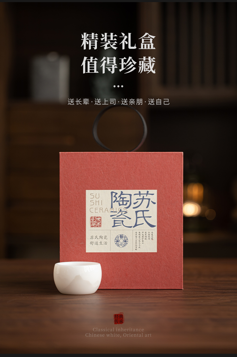 苏氏陶瓷(SUSHI CERAMICS) 冰种淡墨秋山罗汉茶杯 J1210 主人杯50ml 白色(单位:个)