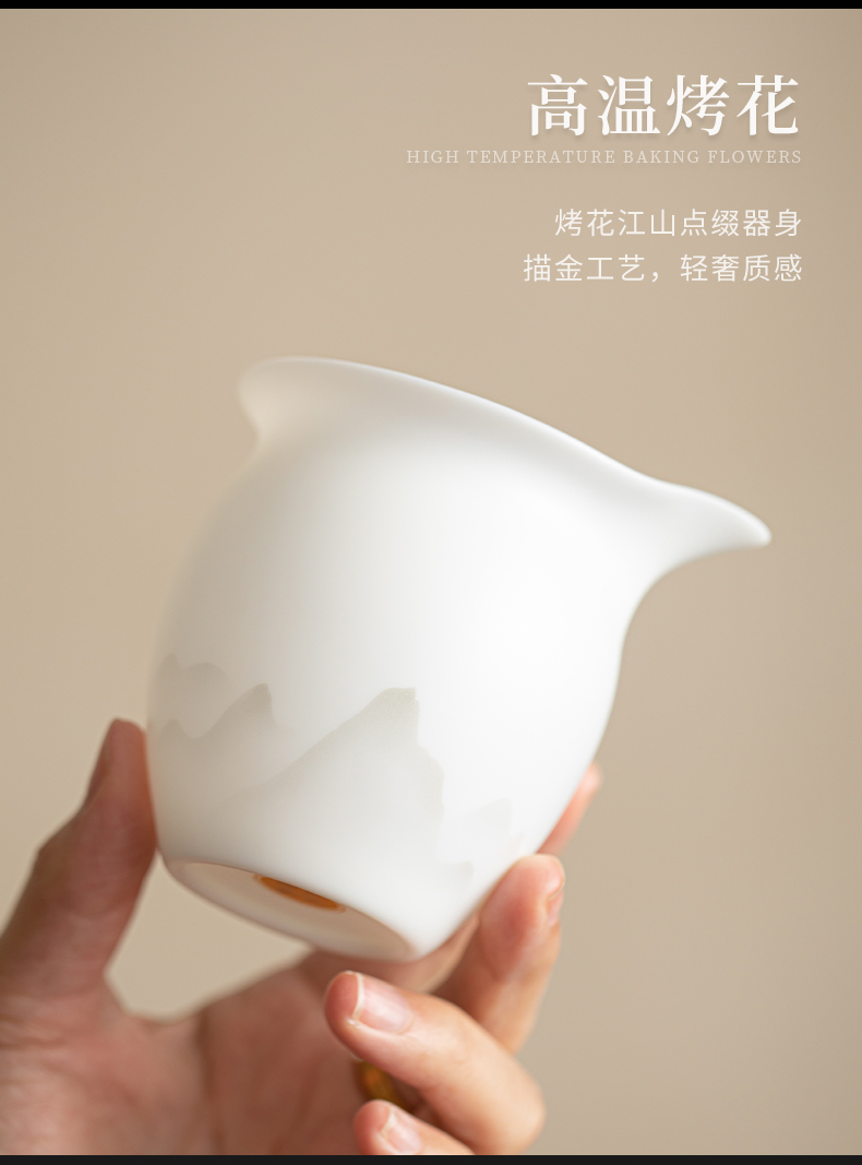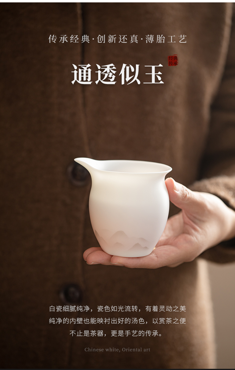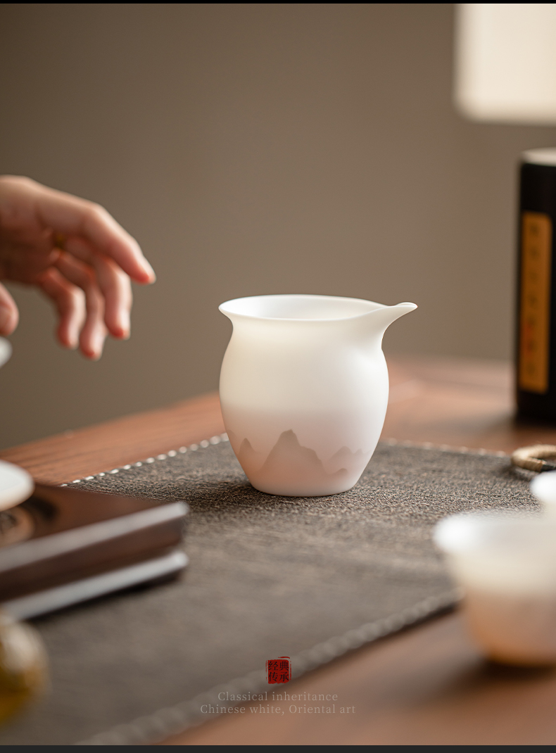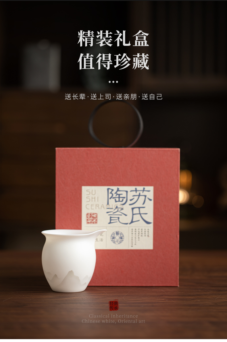 苏氏陶瓷(SUSHI CERAMICS) 玉瓷淡墨秋山公道杯 J1216 茶海170ml 白色(单位:个)