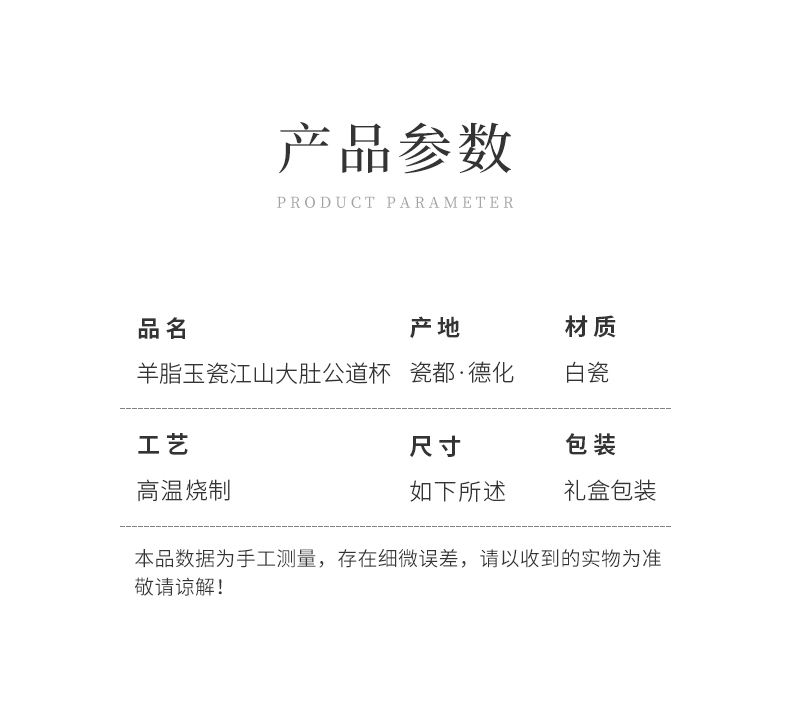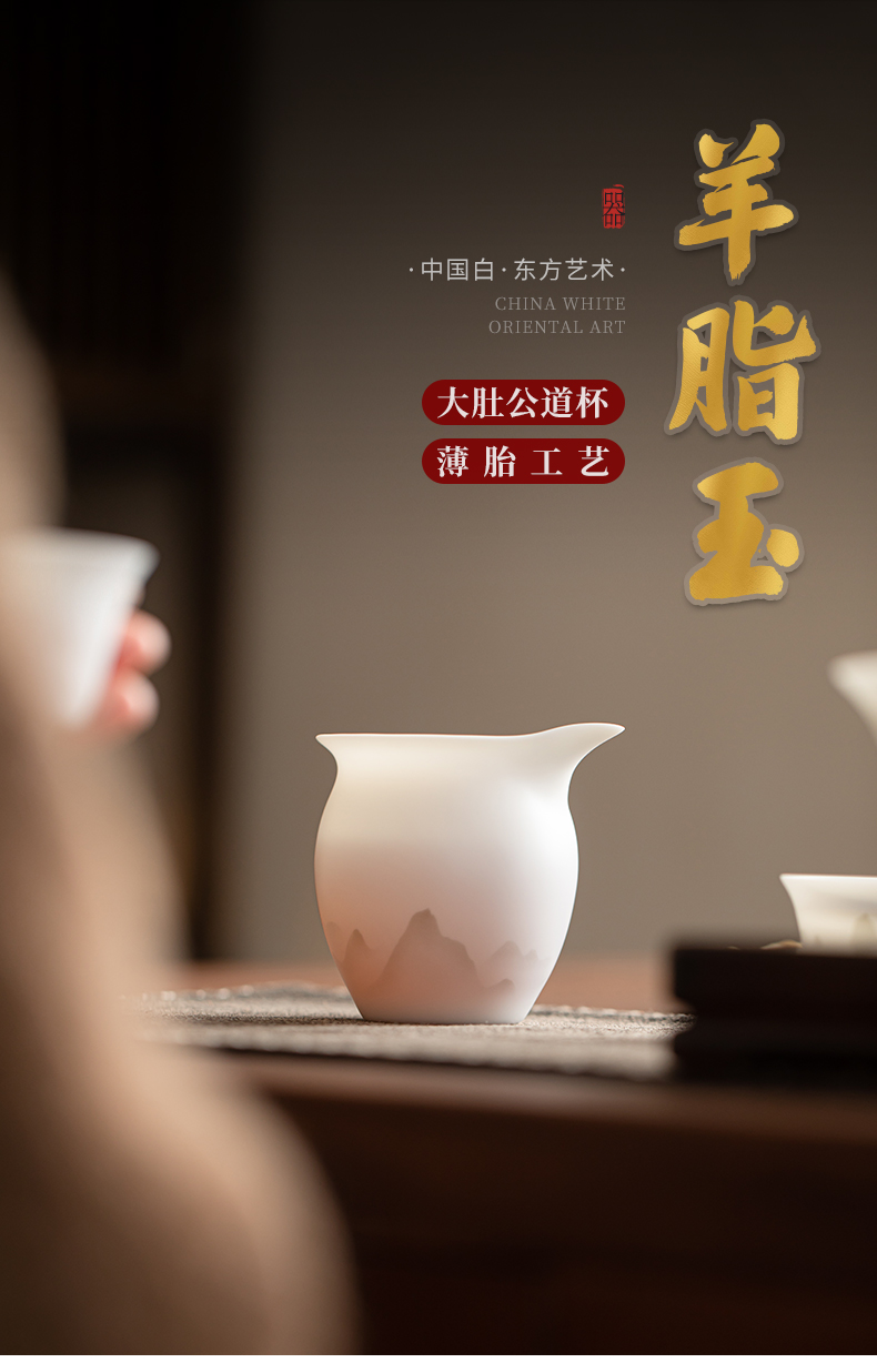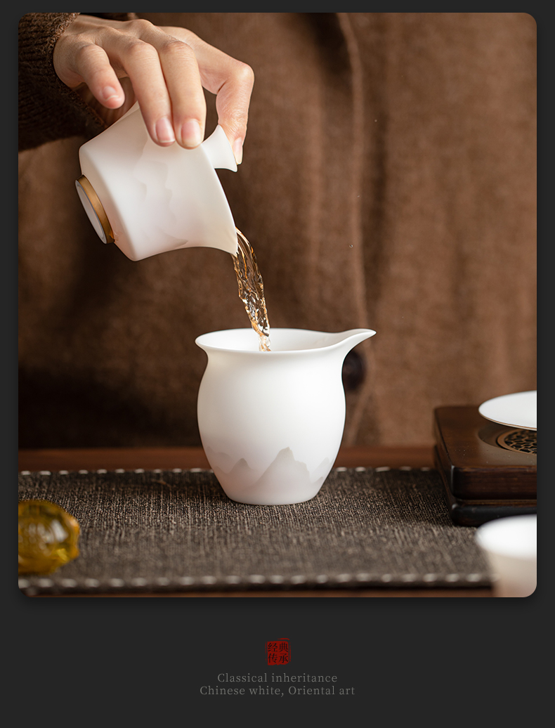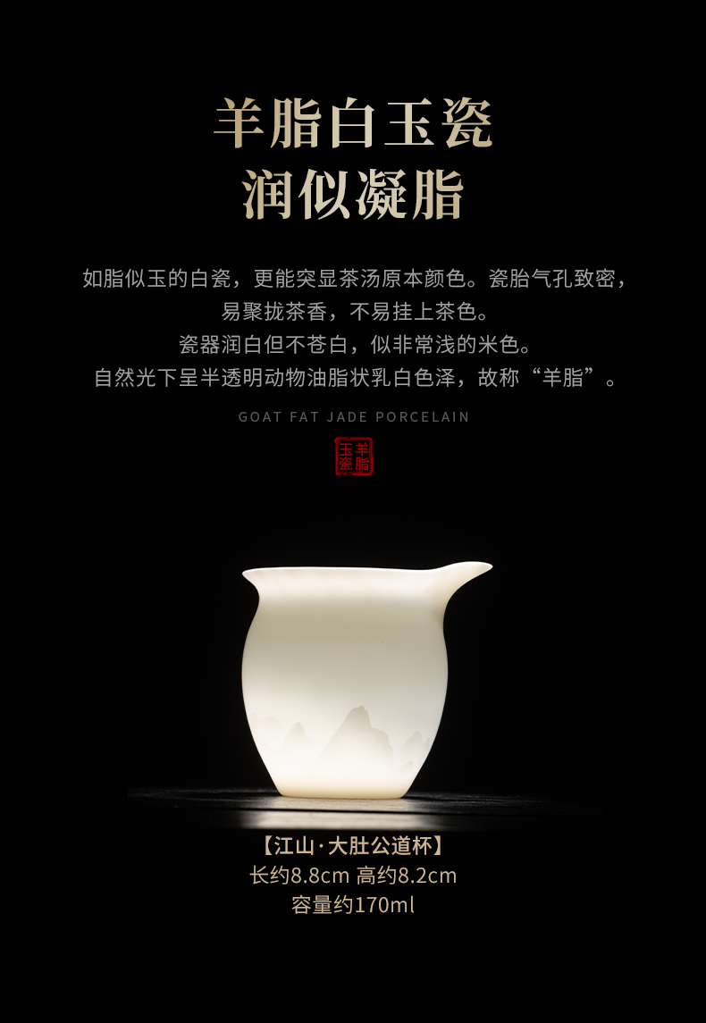 苏氏陶瓷(SUSHI CERAMICS) 玉瓷淡墨秋山公道杯 J1216 茶海170ml 白色(单位:个)