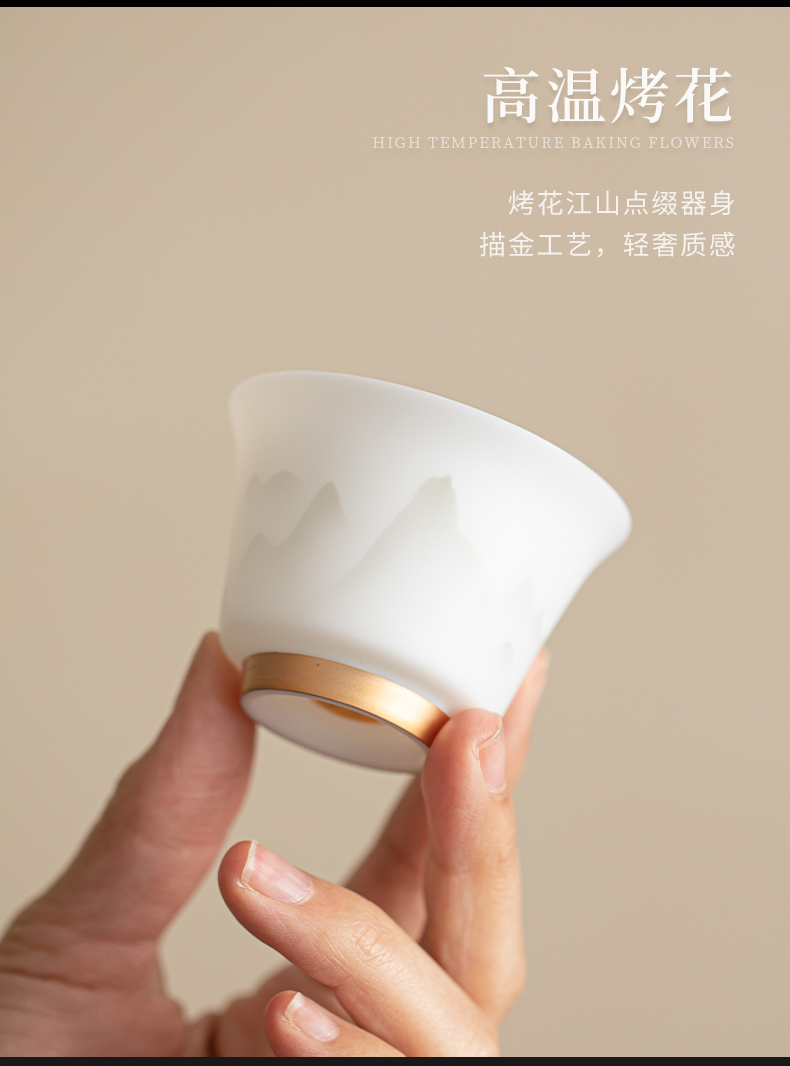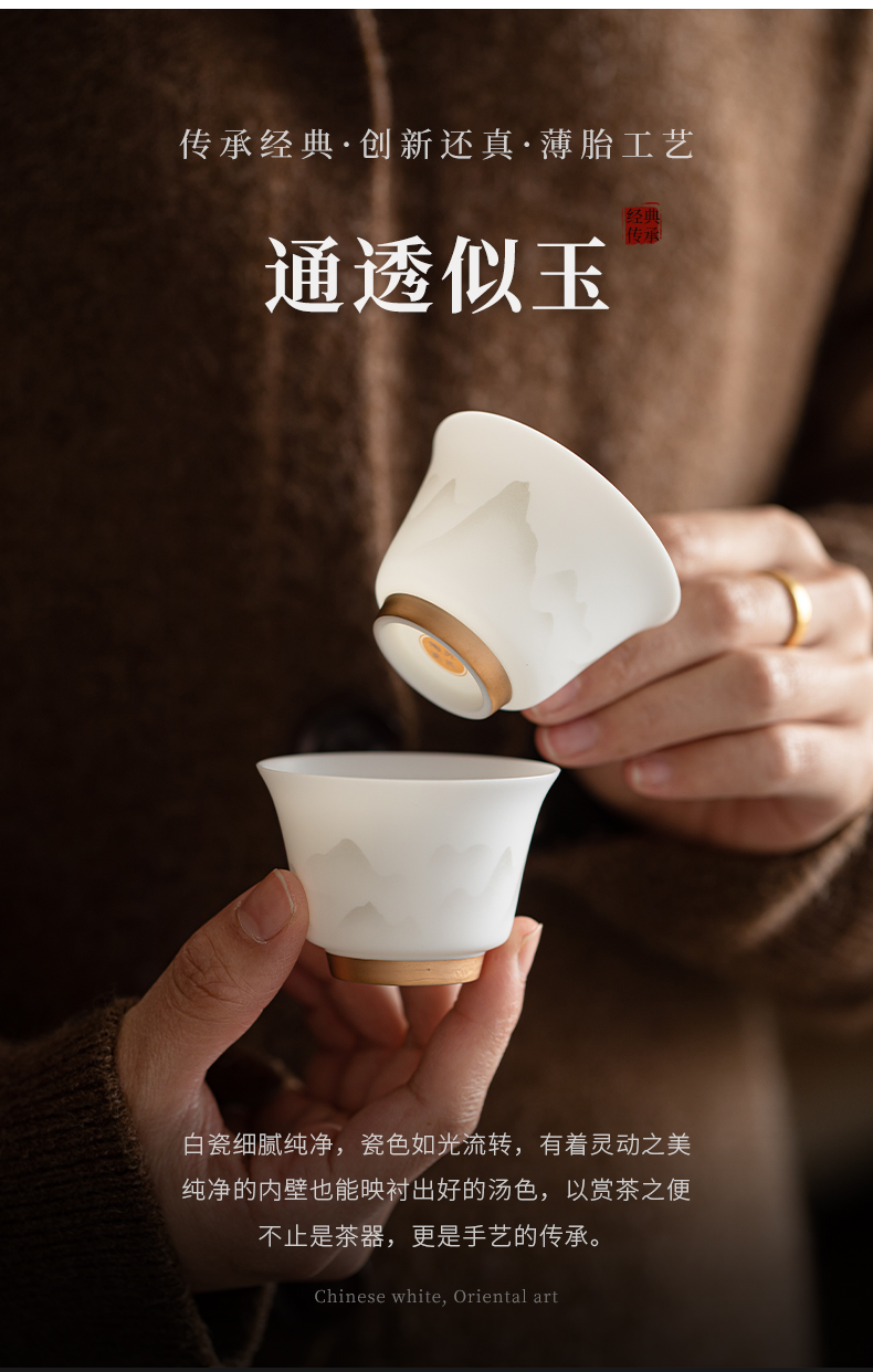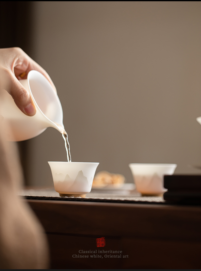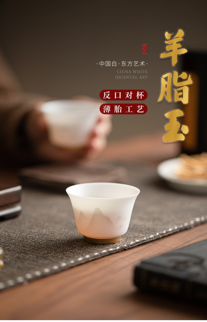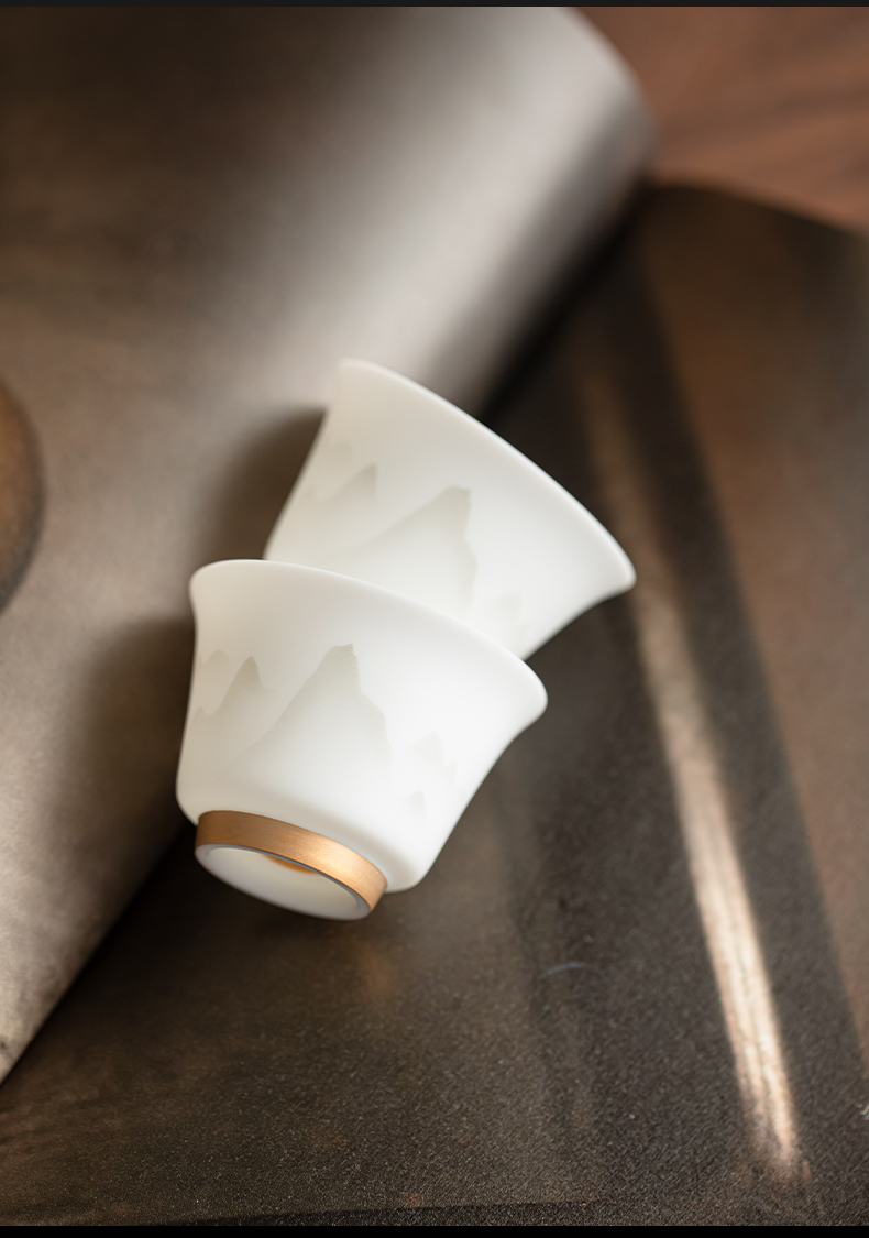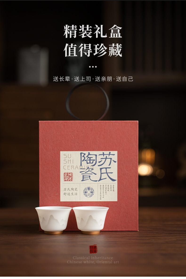 苏氏陶瓷(SUSHI CERAMICS) 玉瓷淡墨秋山反口对杯 J1217 茶杯50ml*2 白色(单位:套)