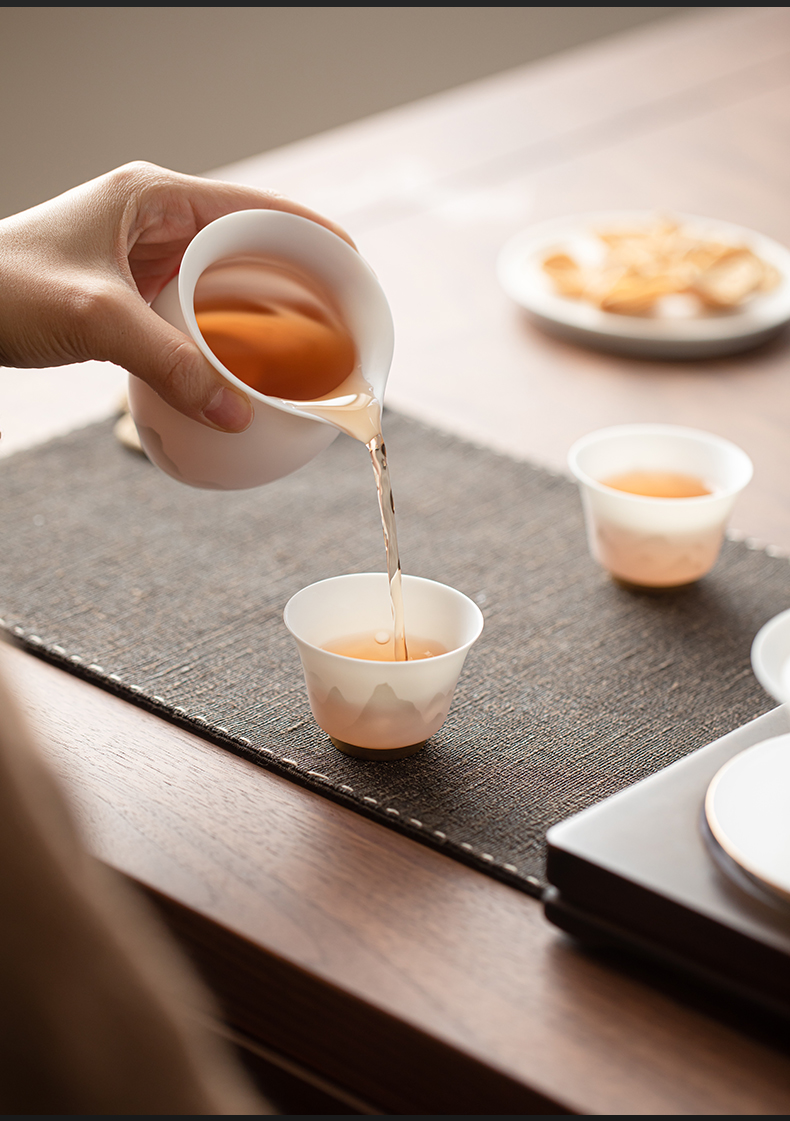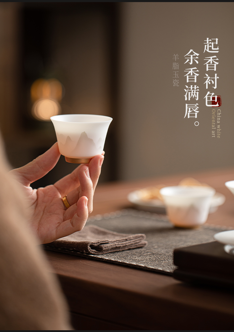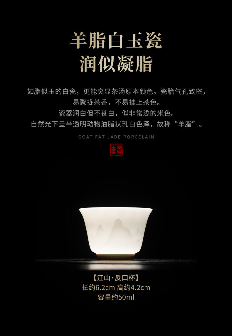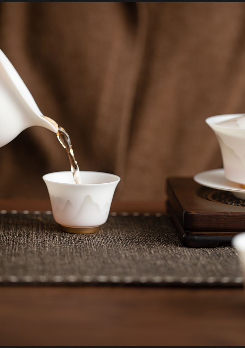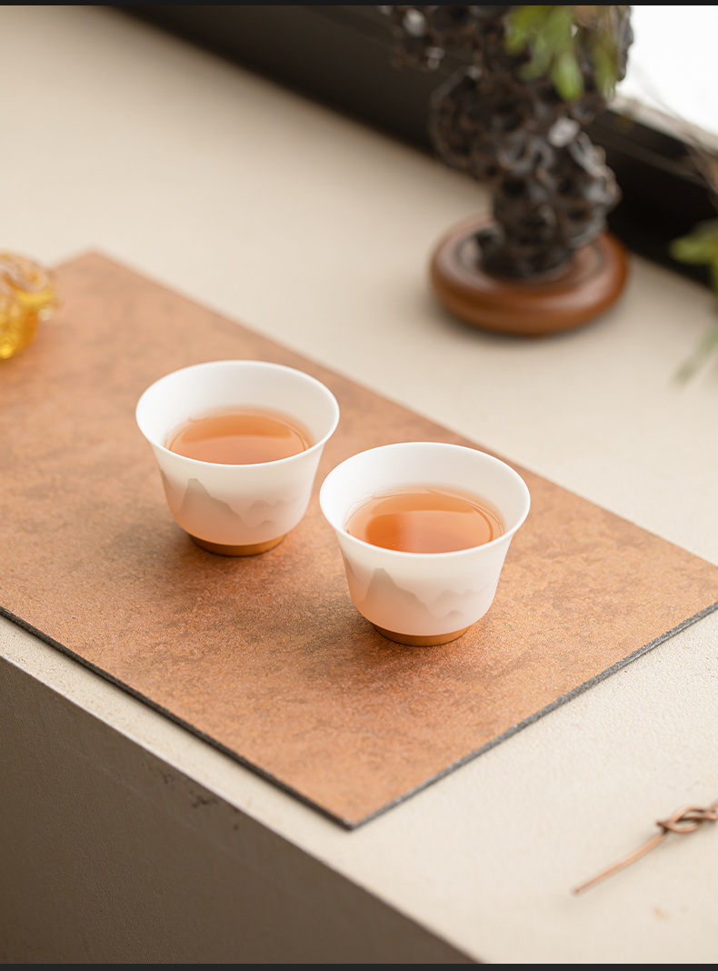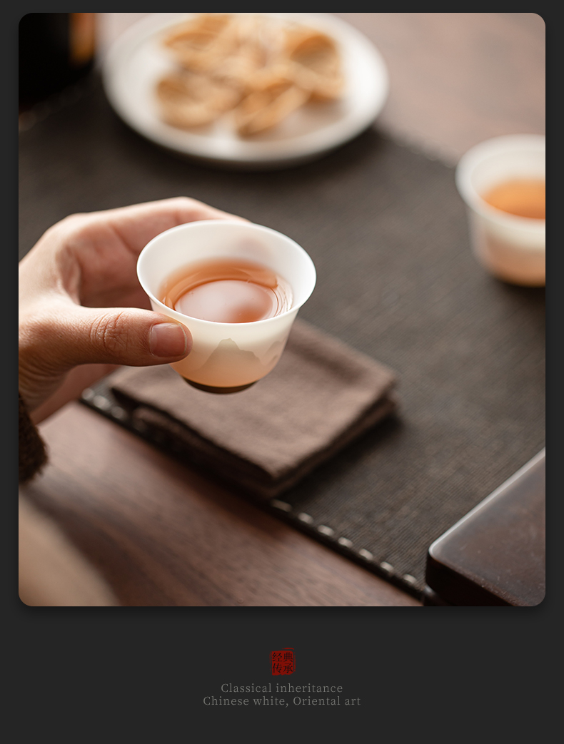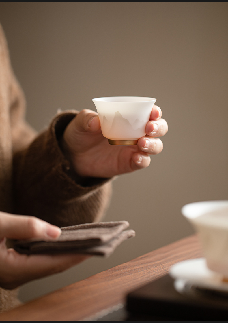 苏氏陶瓷(SUSHI CERAMICS) 玉瓷淡墨秋山反口对杯 J1217 茶杯50ml*2 白色(单位:套)