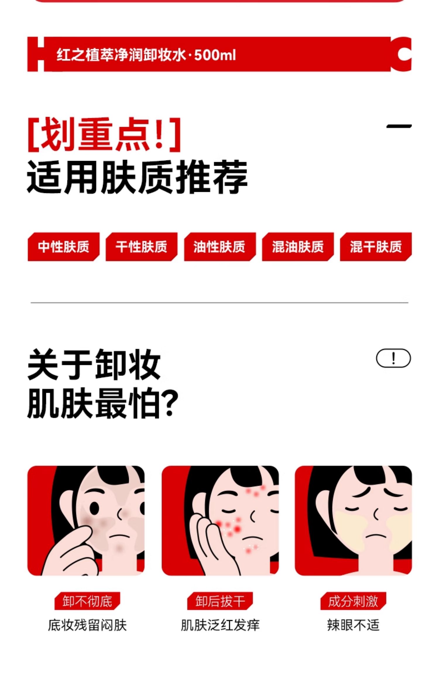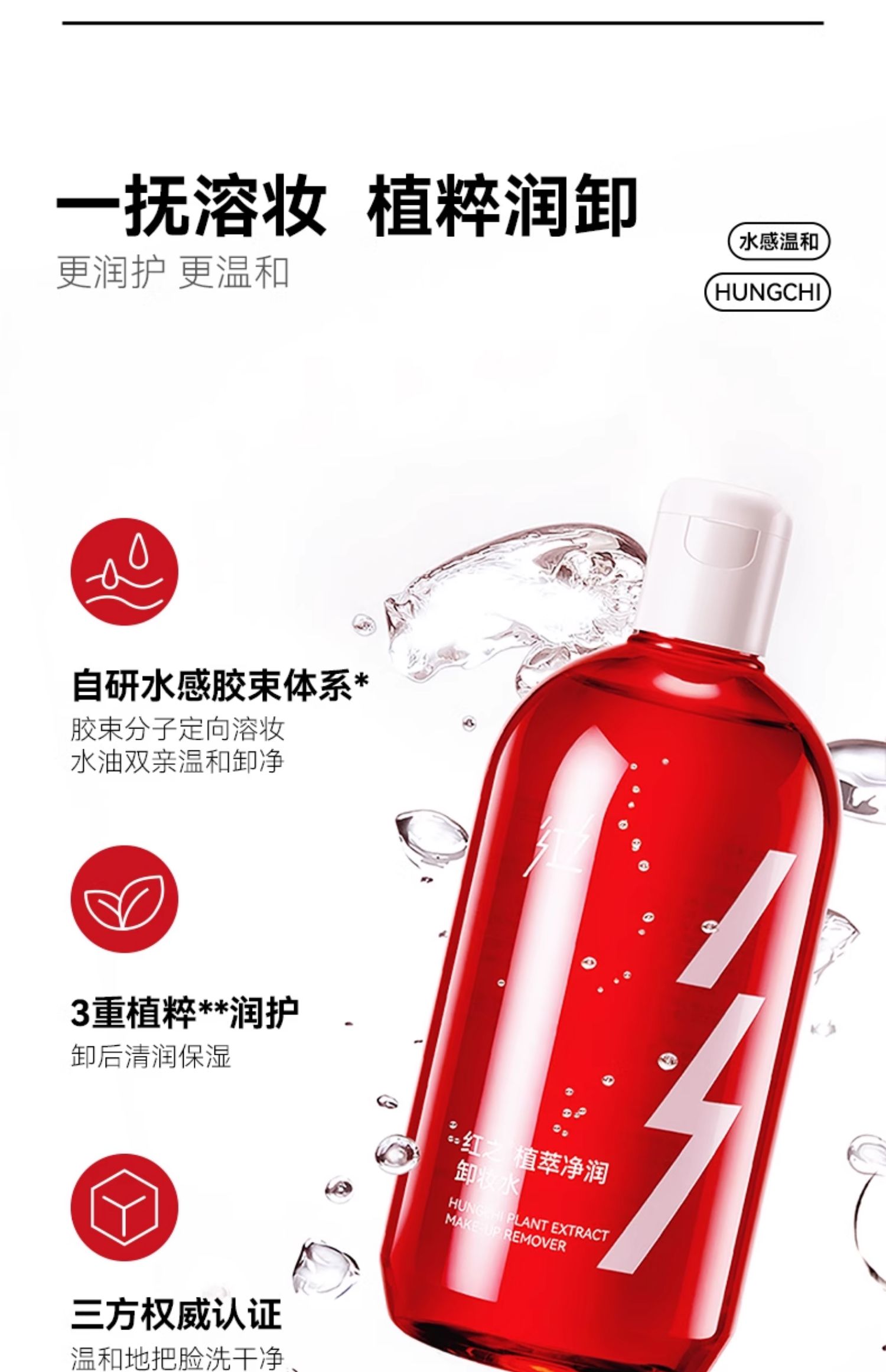 红之(HUNGCHI) 植萃净润卸妆水 柔和清洁 500ml 红色(单位:瓶)