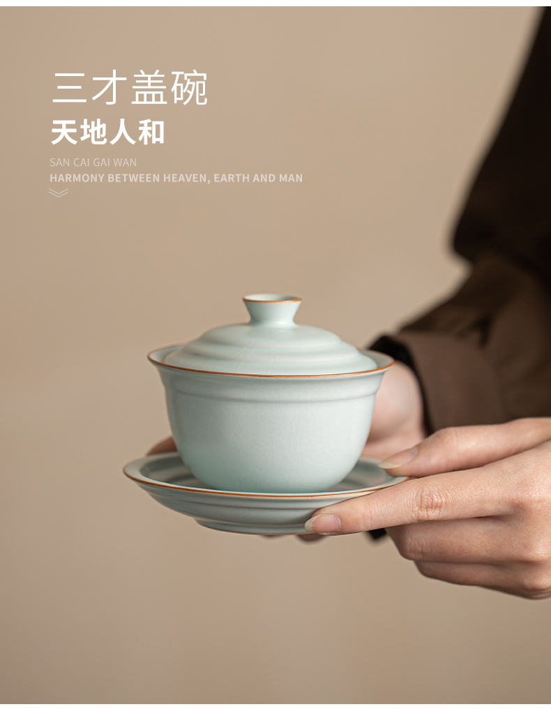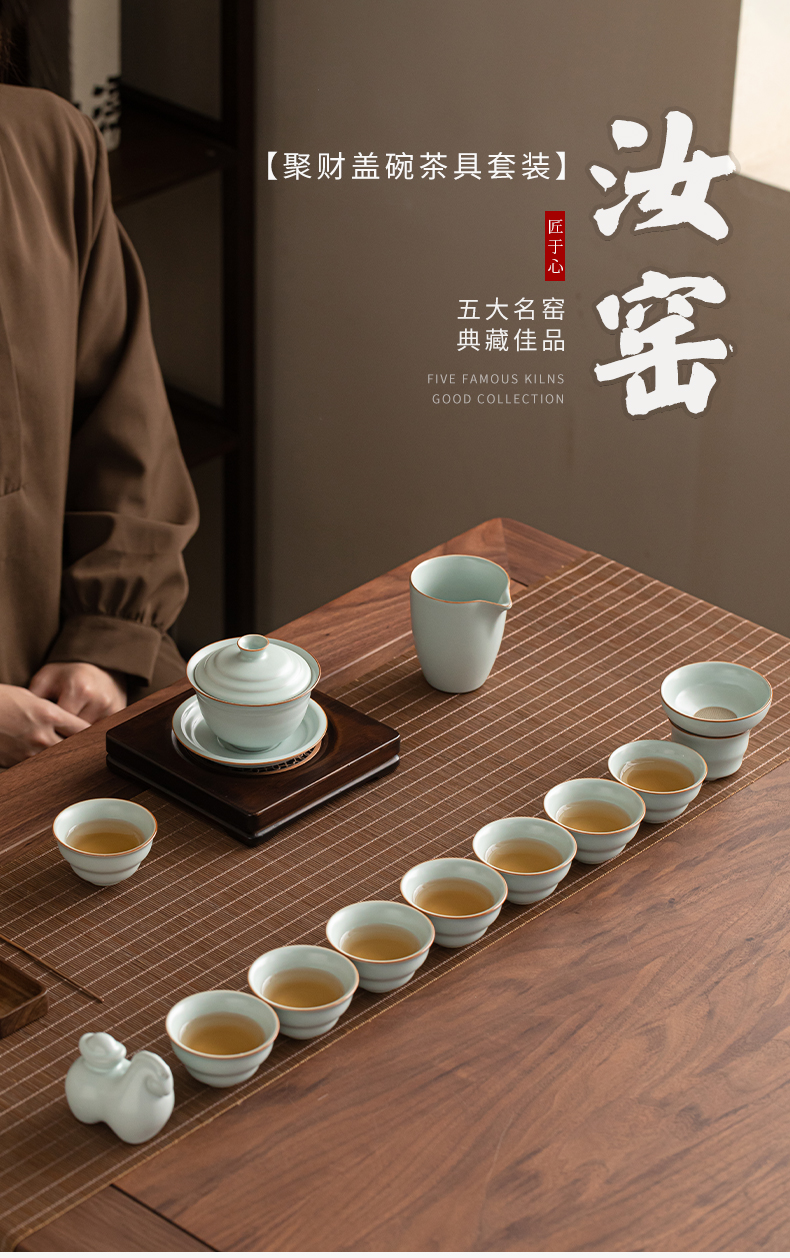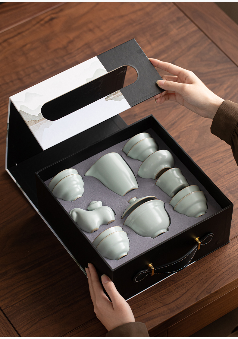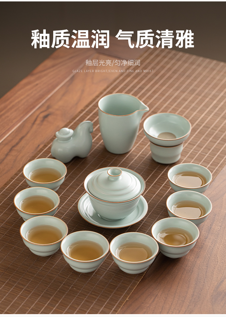 苏氏陶瓷(SUSHI CERAMICS) 汝窑盖碗茶宠礼盒套装 J1228 茶具*13头 蓝色(单位:套)