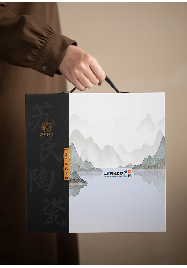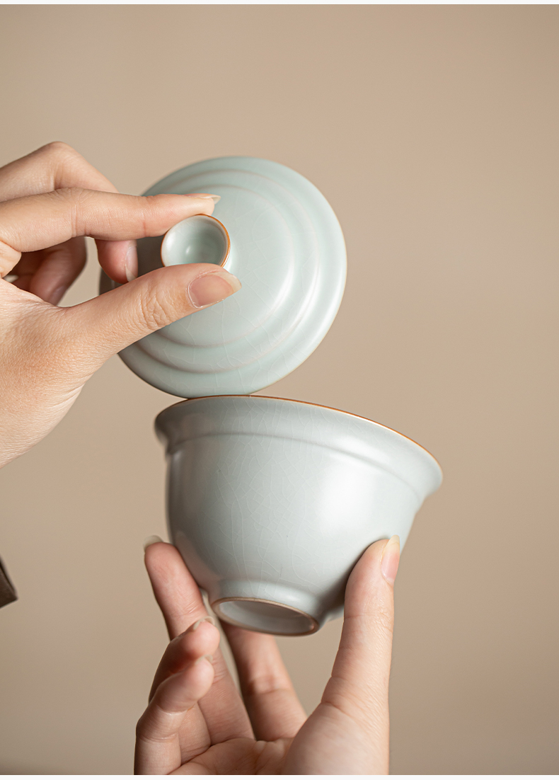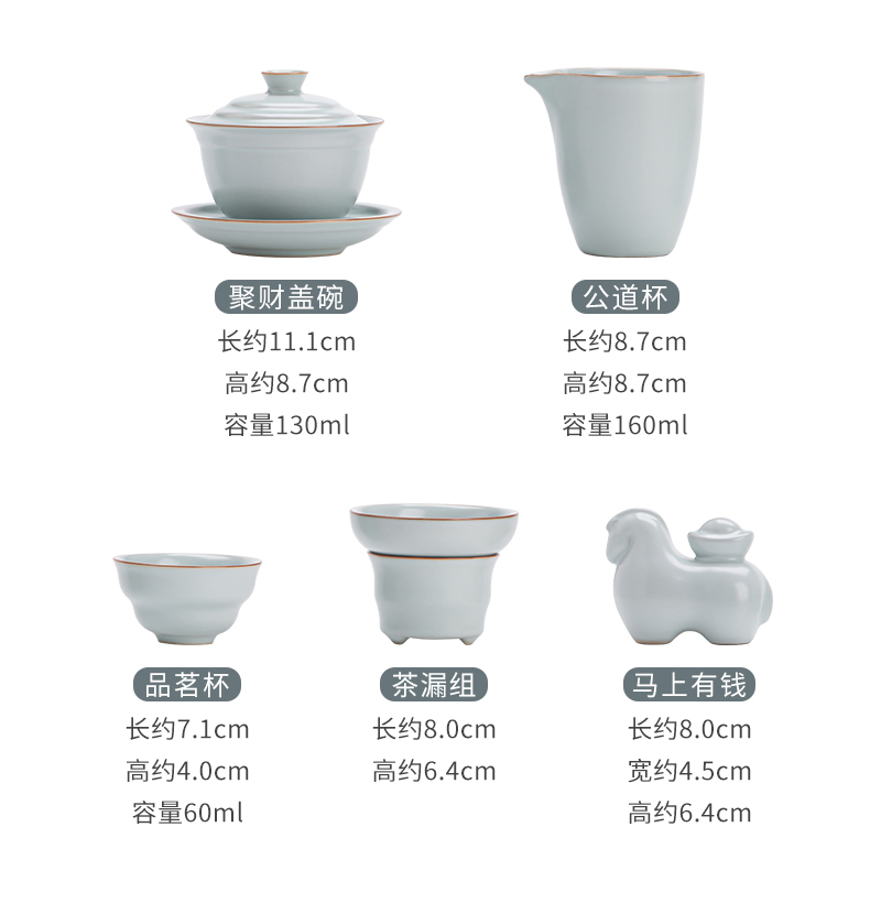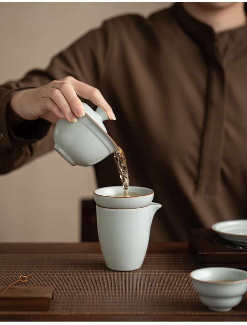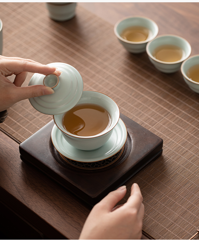 苏氏陶瓷(SUSHI CERAMICS) 汝窑盖碗茶宠礼盒套装 J1228 茶具*13头 蓝色(单位:套)