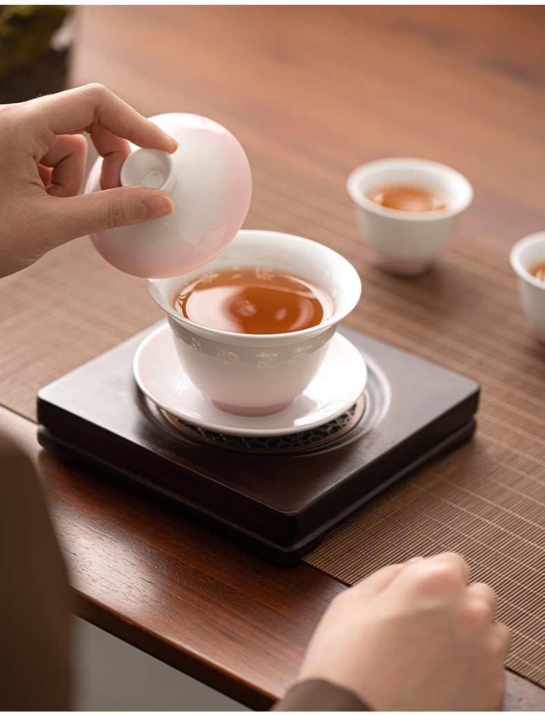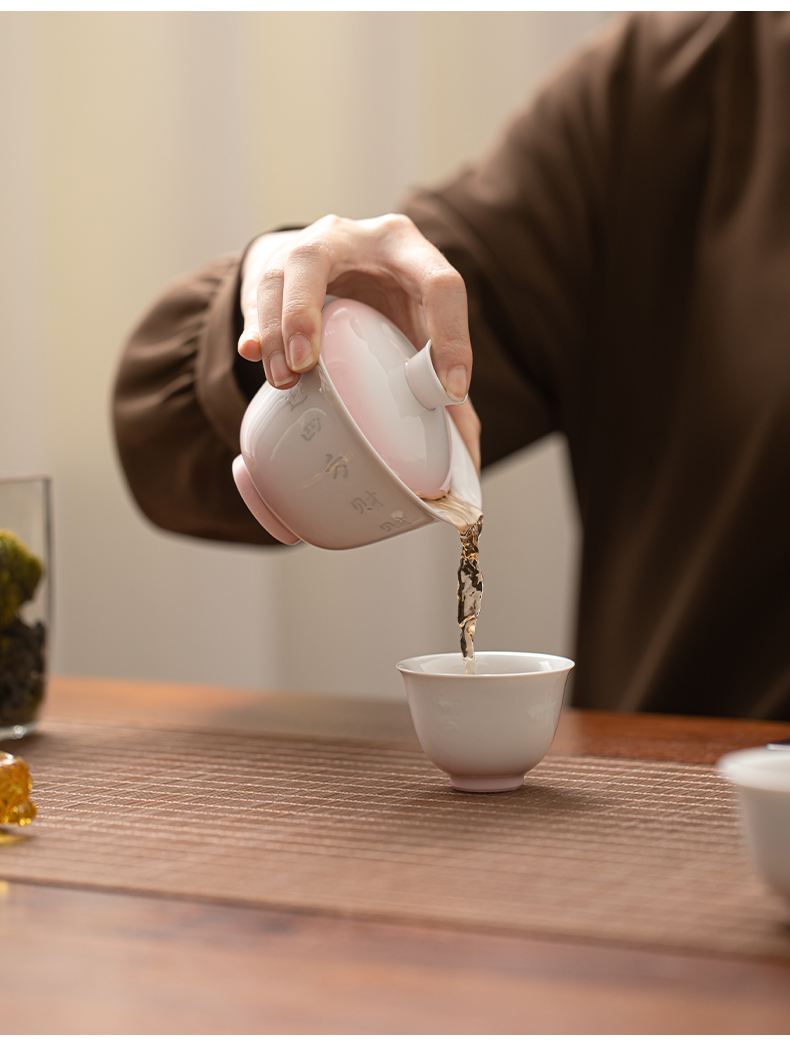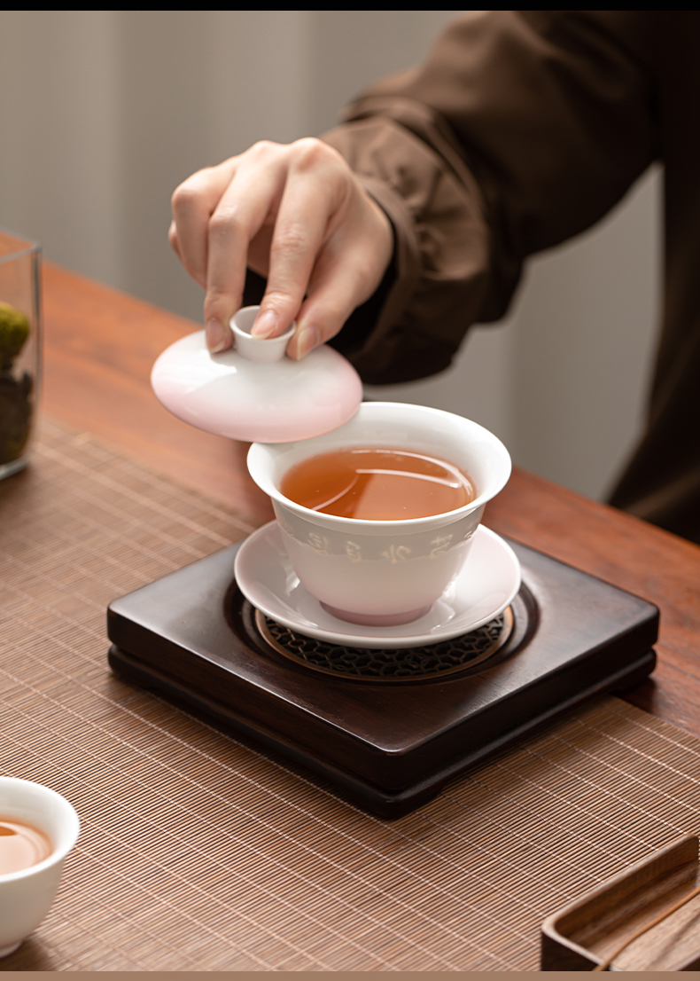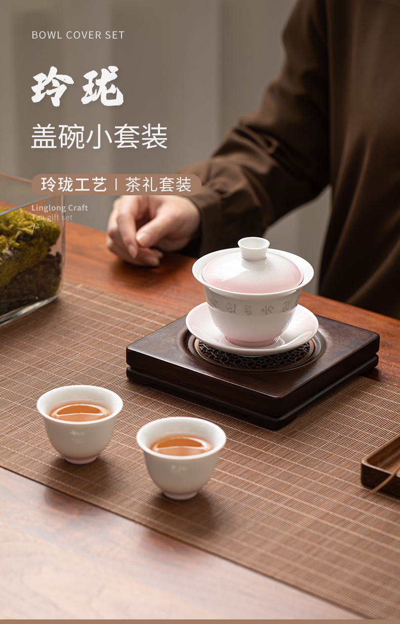 苏氏陶瓷(SUSHI CERAMICS) 渐变粉玲珑盖碗小套装 J1233 茶具4头 粉色(单位:套)