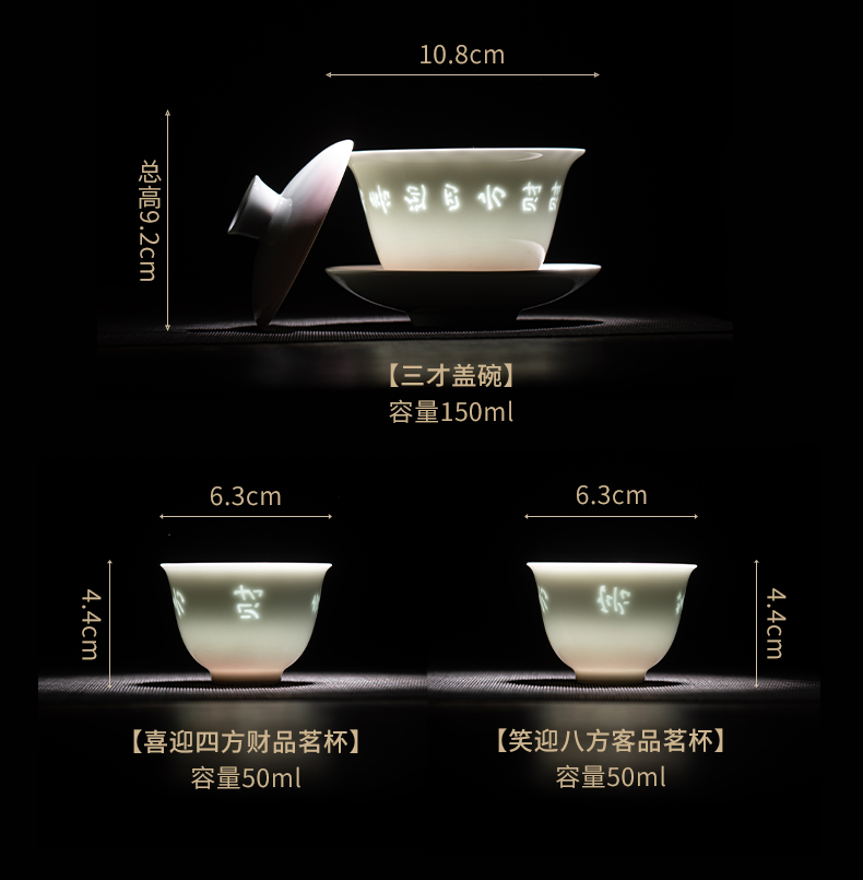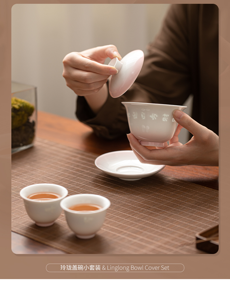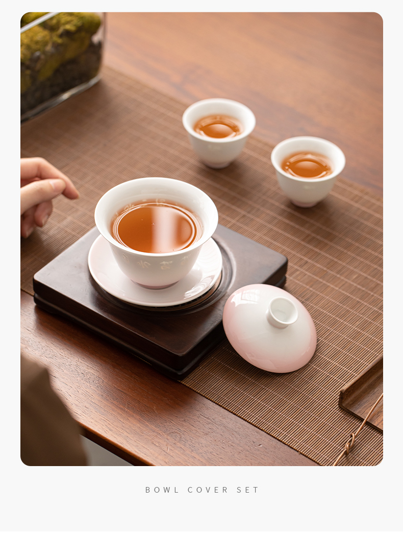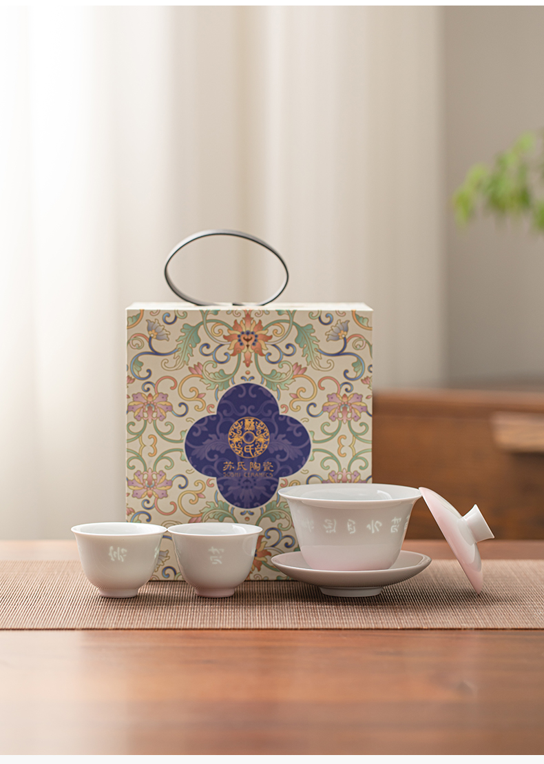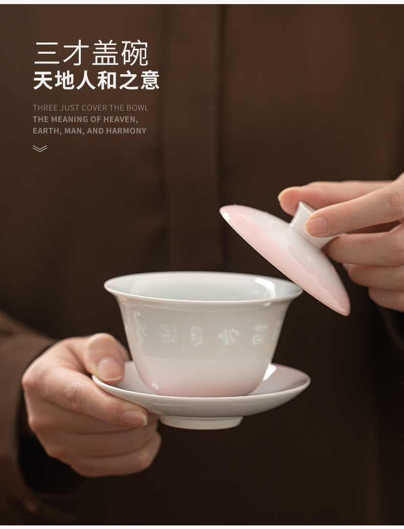 苏氏陶瓷(SUSHI CERAMICS) 渐变粉玲珑盖碗小套装 J1233 茶具4头 粉色(单位:套)