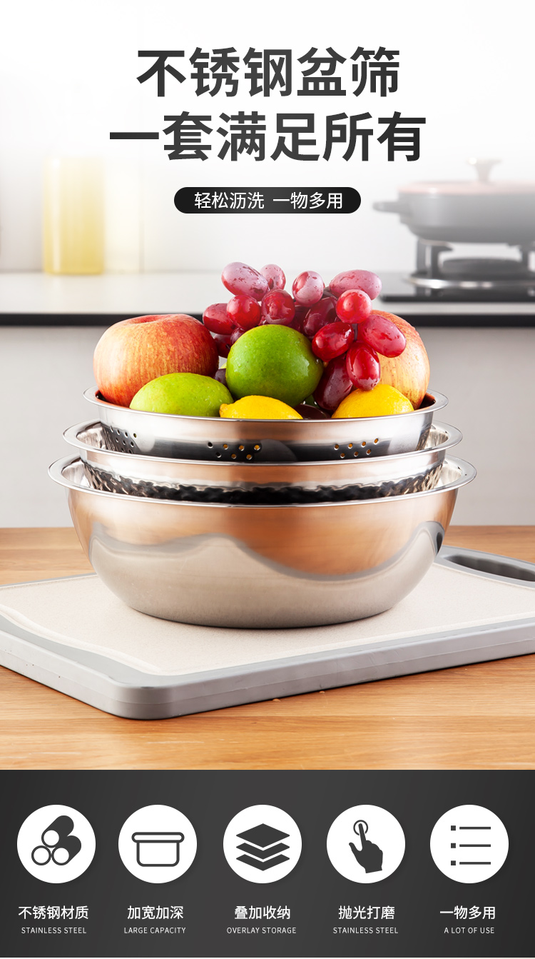 美厨米筛三件套MCM-3 不锈钢