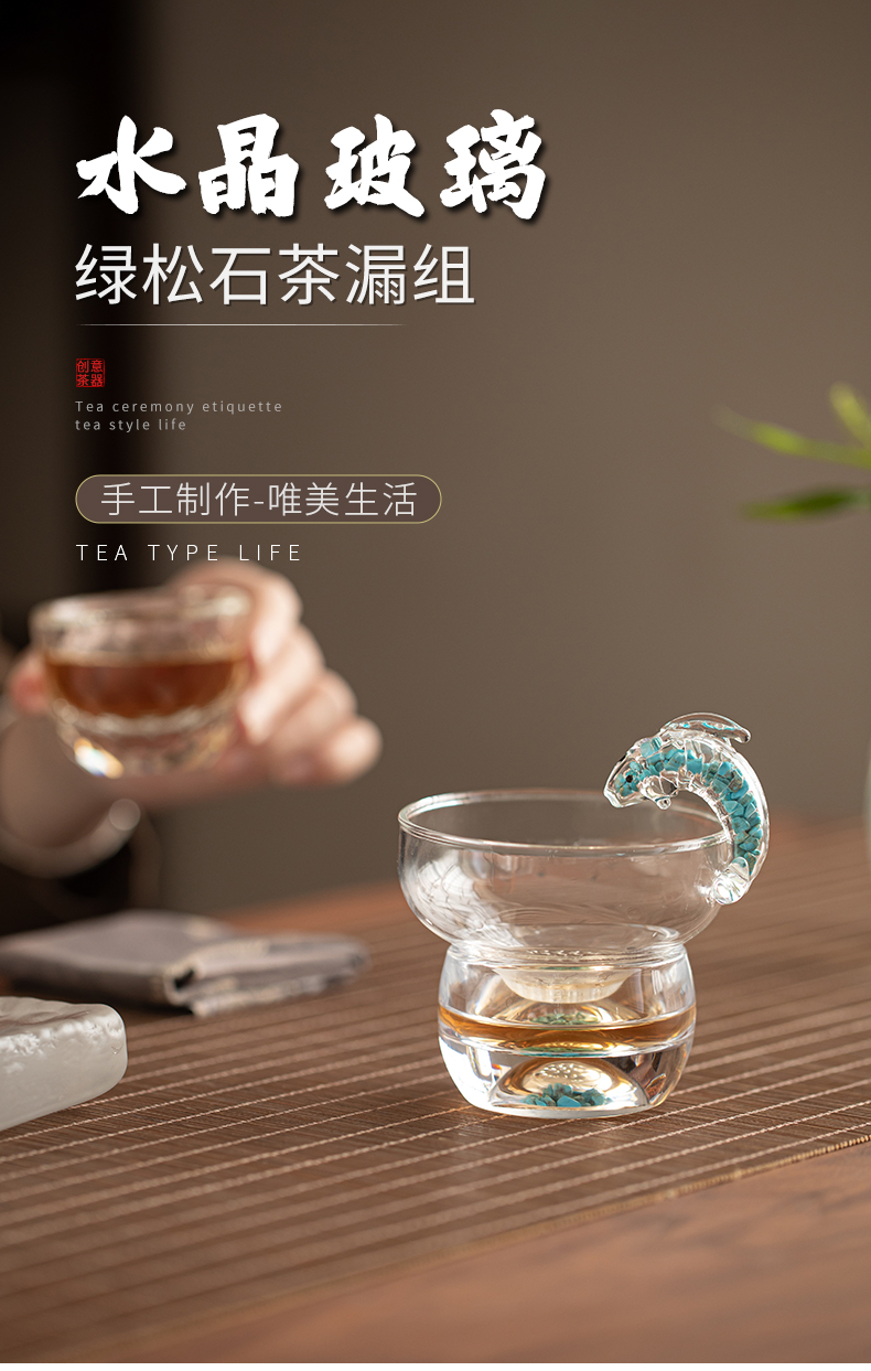 苏氏陶瓷(SUSHI CERAMICS) 绿松石玻璃茶漏过滤组 J1245 9.6*10.3cm 透明(单位:套)