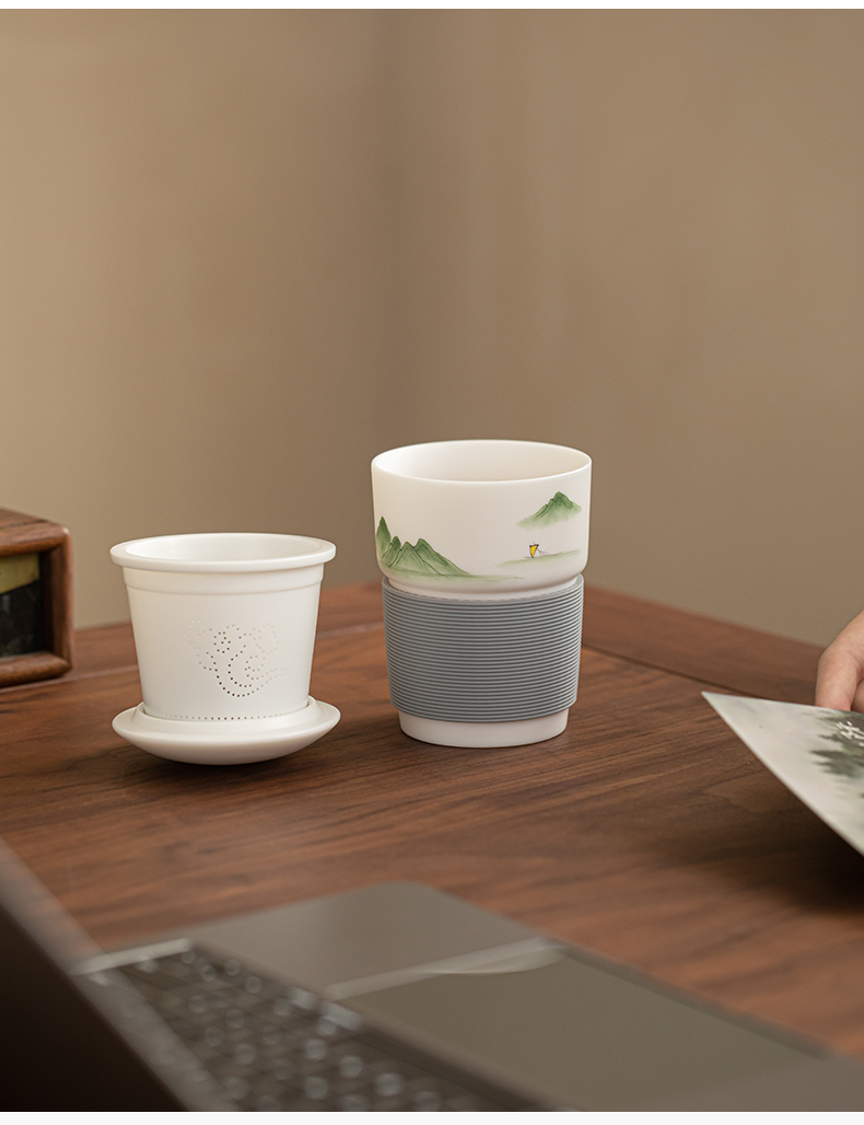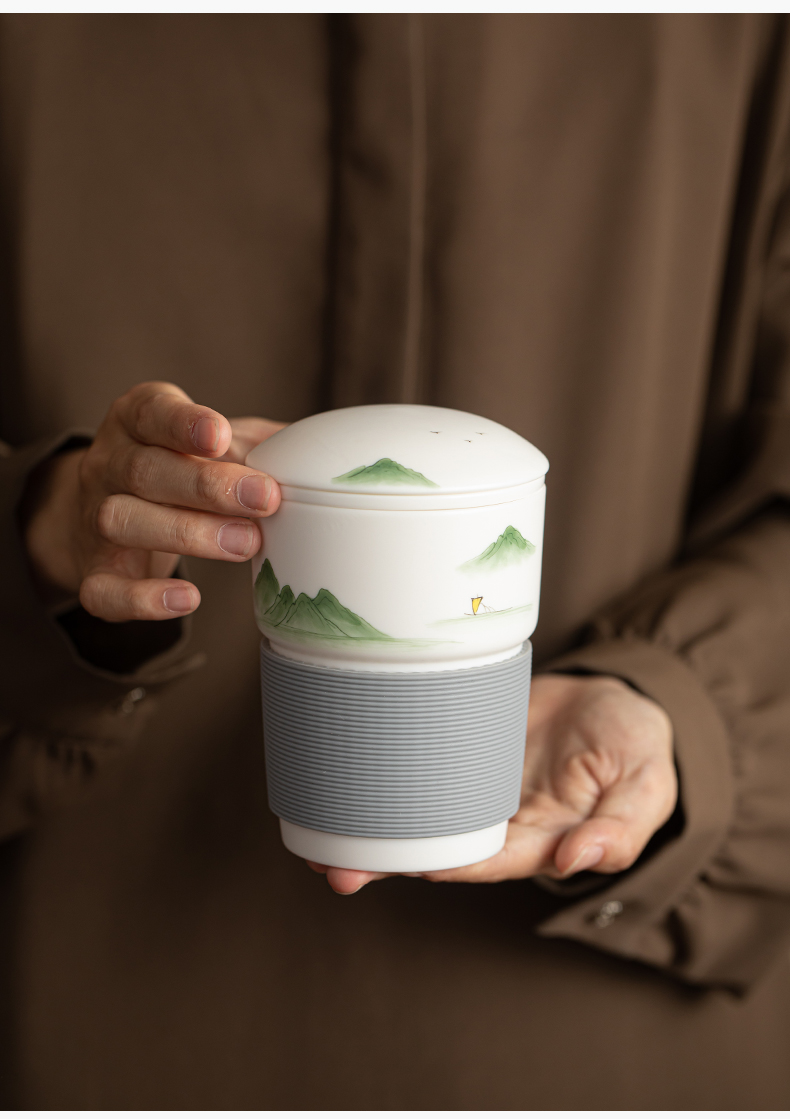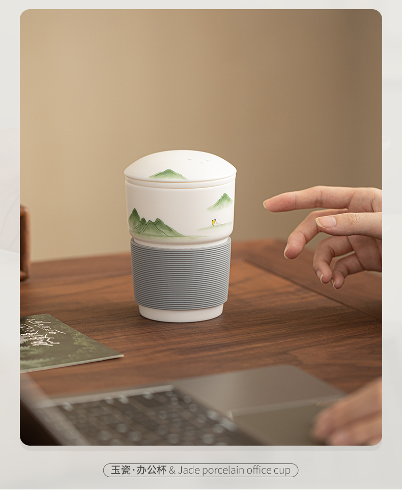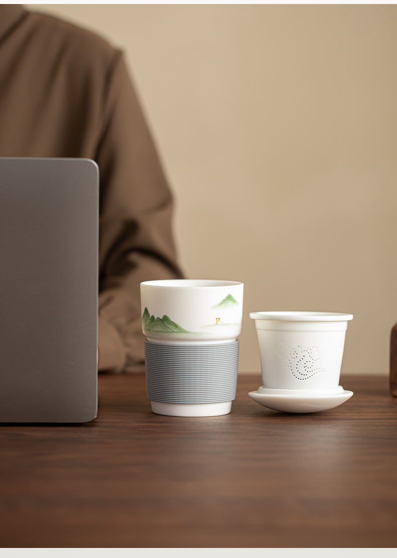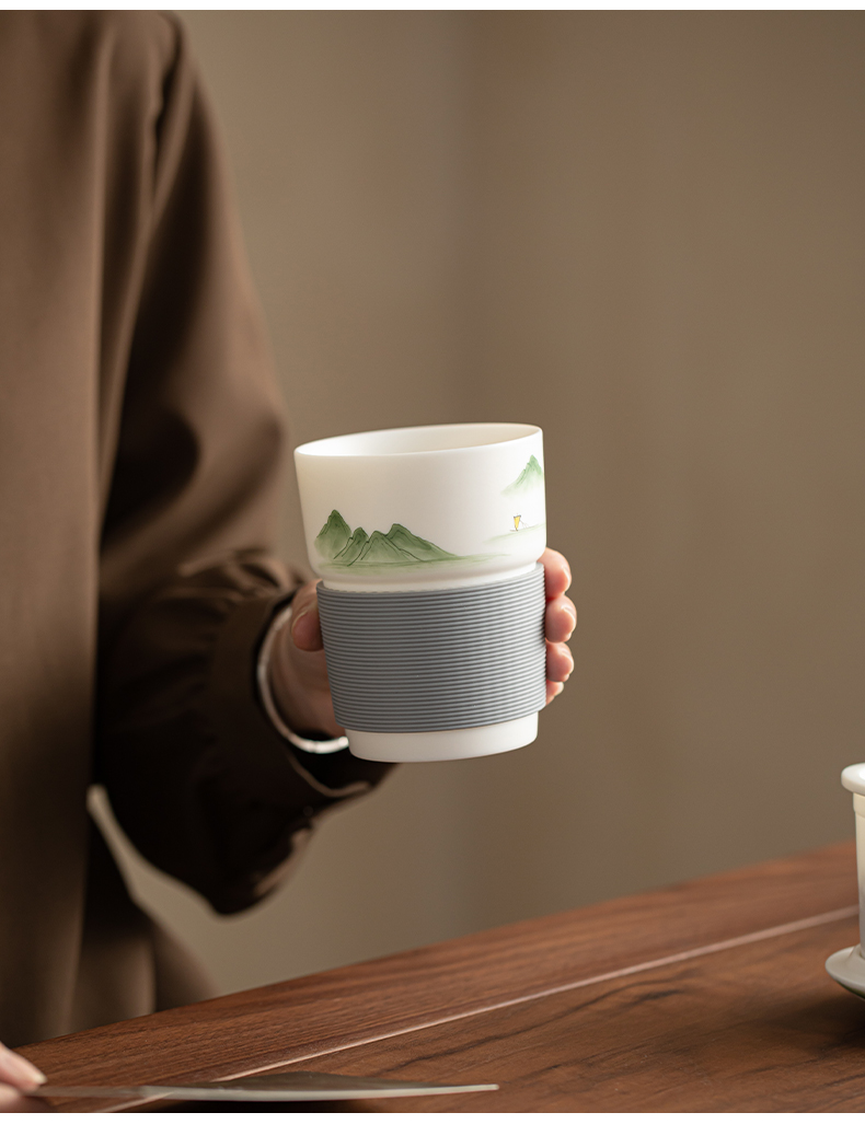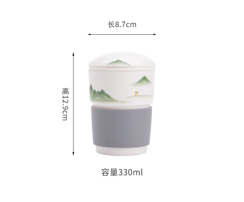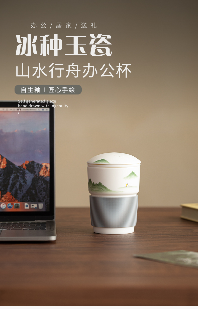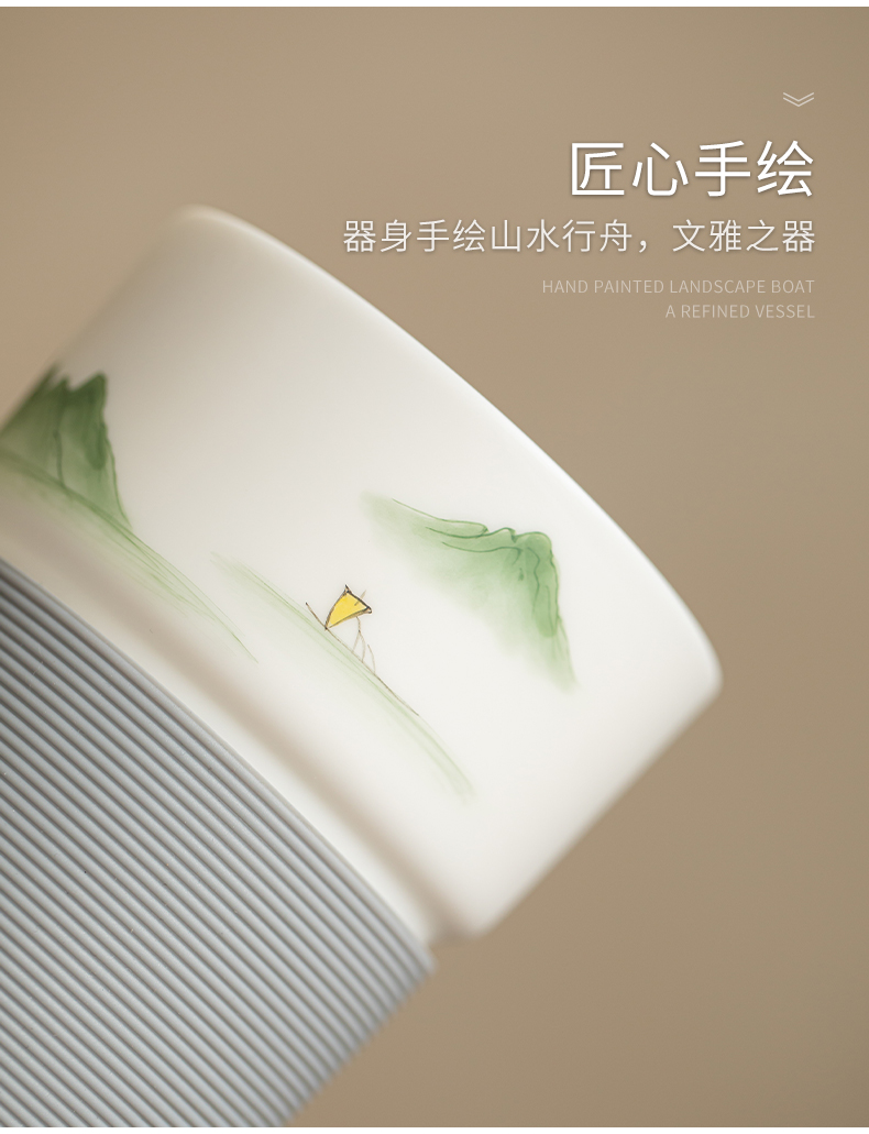 苏氏陶瓷(SUSHI CERAMICS) 素烧山水行舟办公杯 J1266 茶杯330ml 白色(单位:个)
