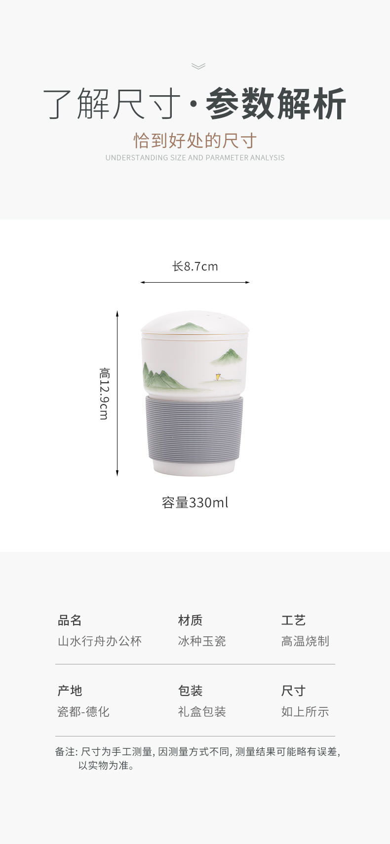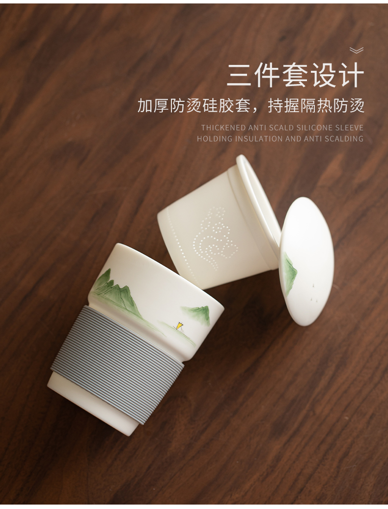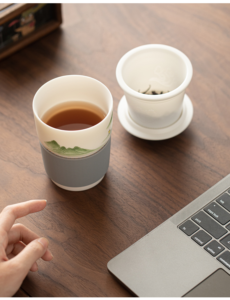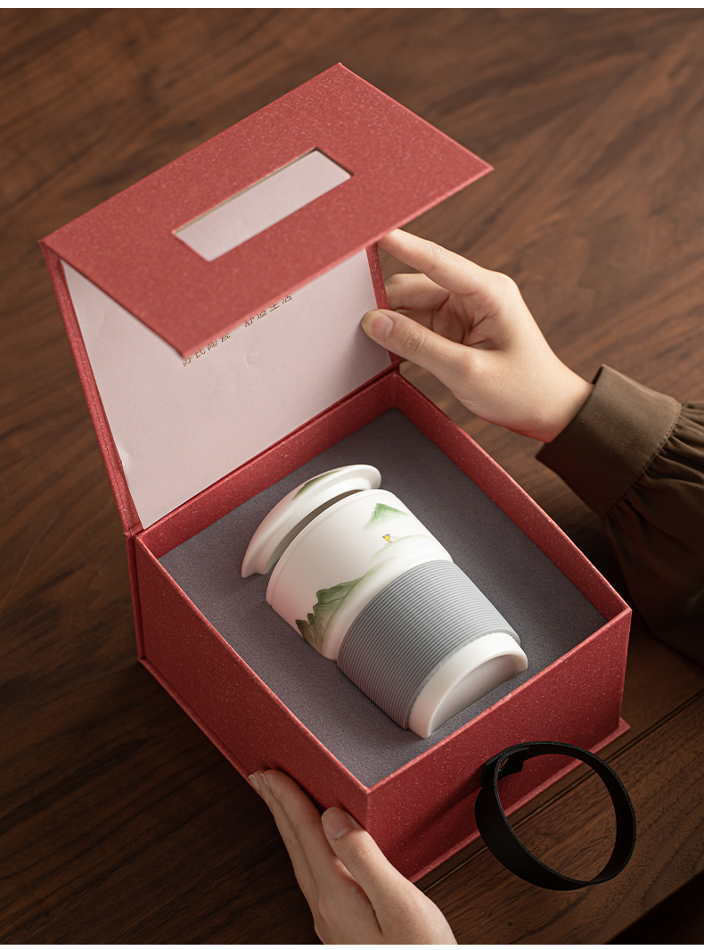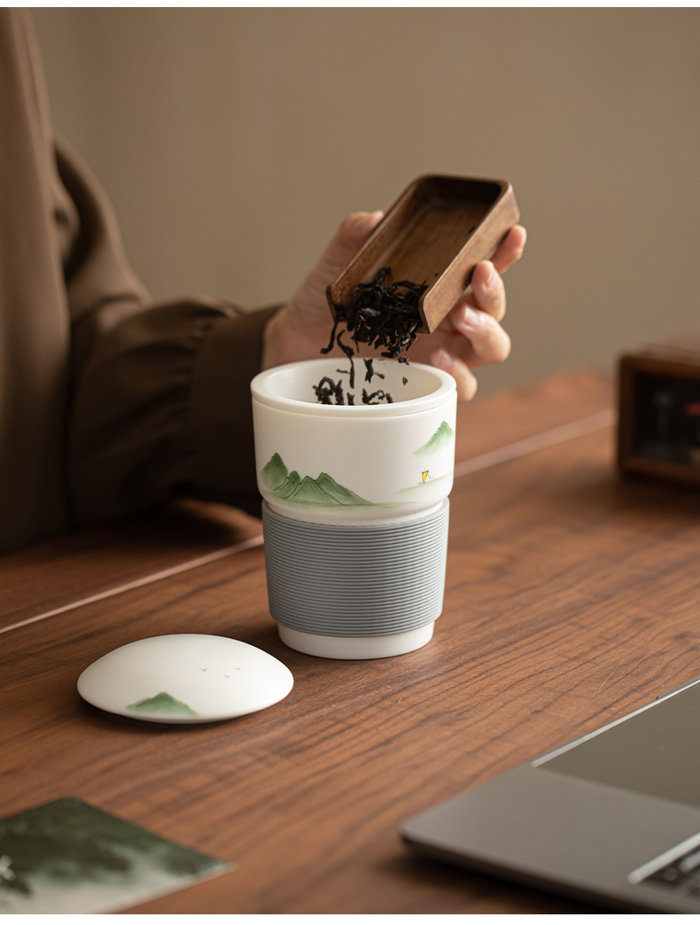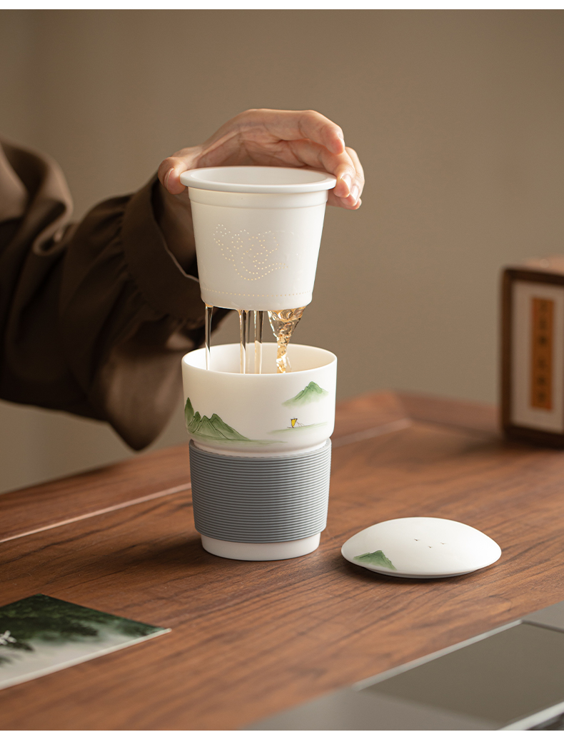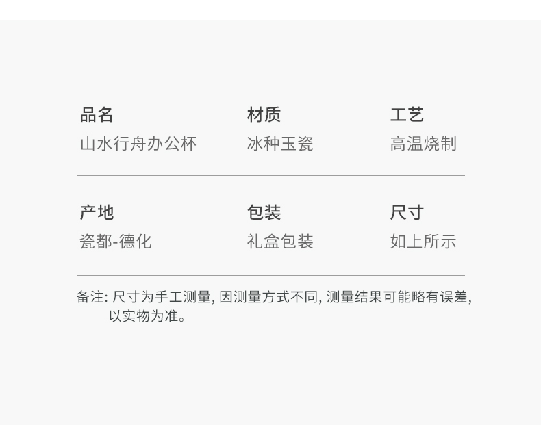 苏氏陶瓷(SUSHI CERAMICS) 素烧山水行舟办公杯 J1266 茶杯330ml 白色(单位:个)
