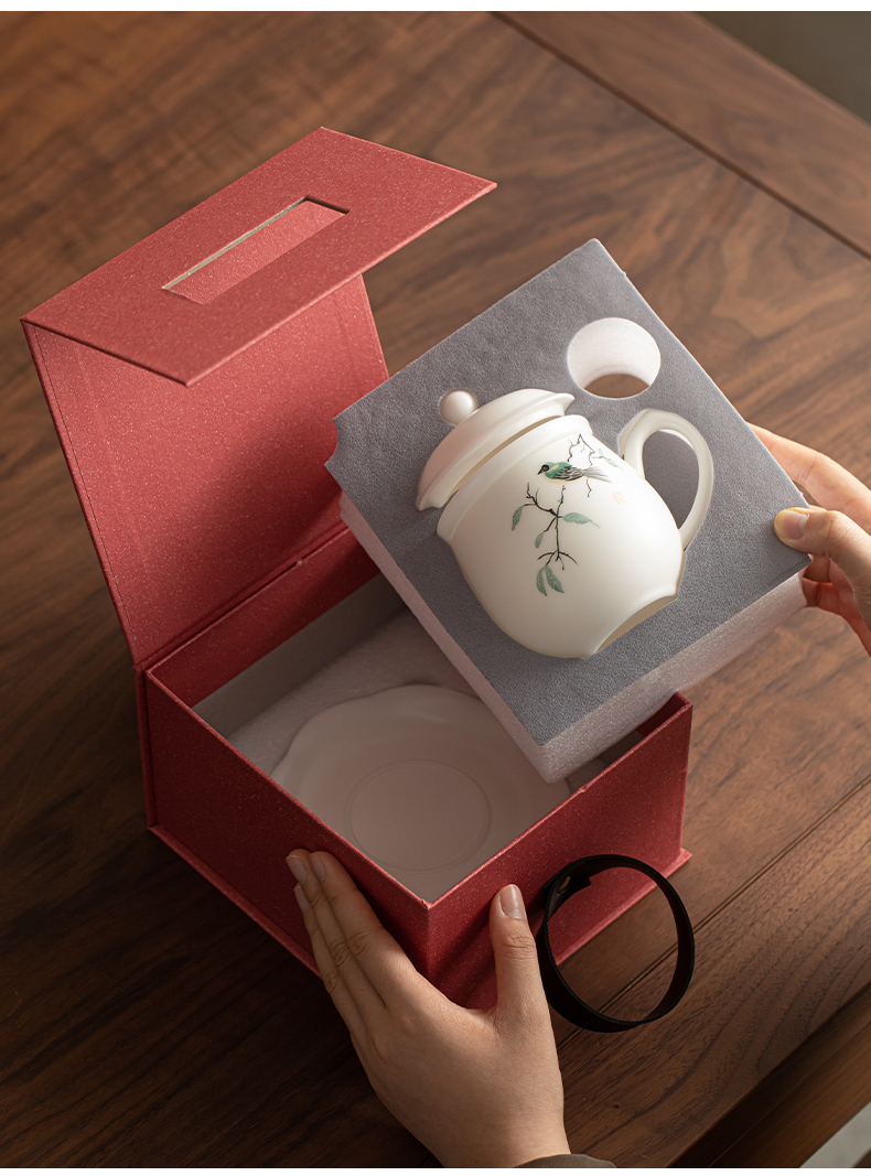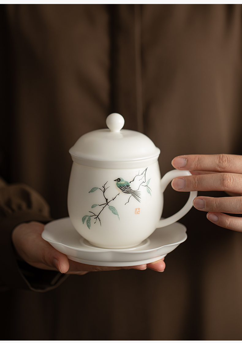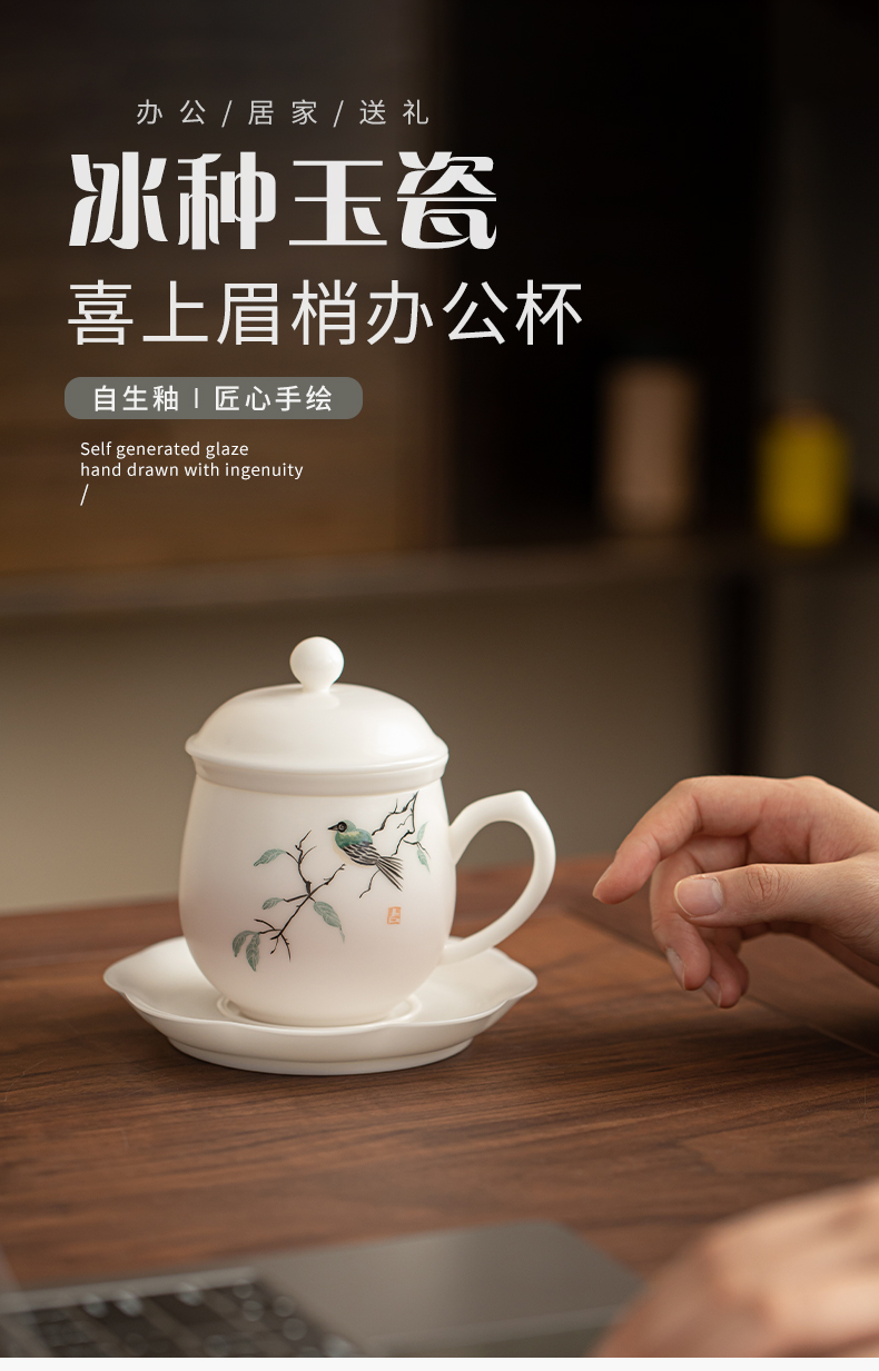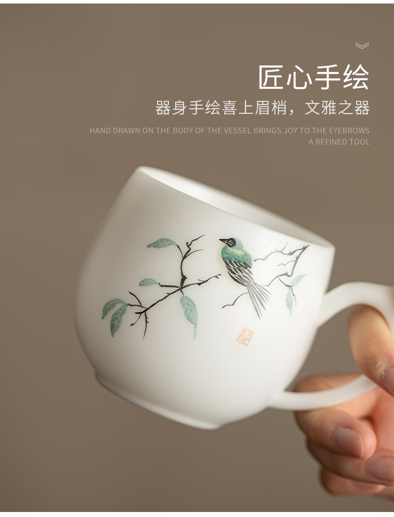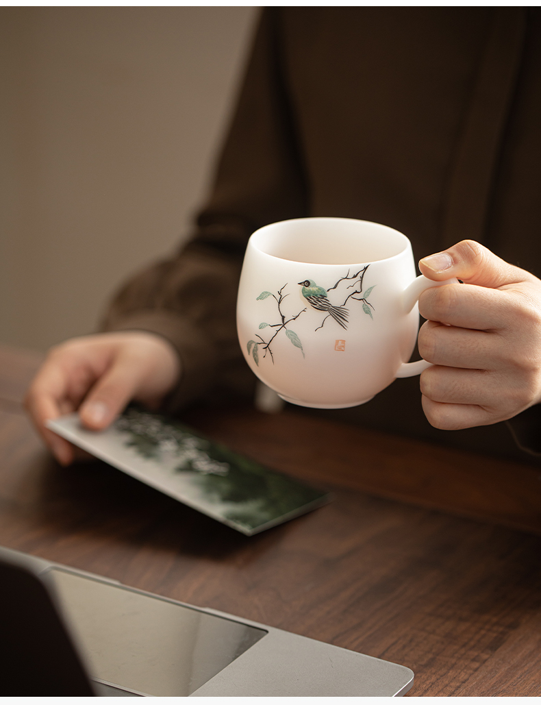 苏氏陶瓷(SUSHI CERAMICS) 素烧手绘喜上眉梢办公杯 J1268 300ml 白色(单位:套)