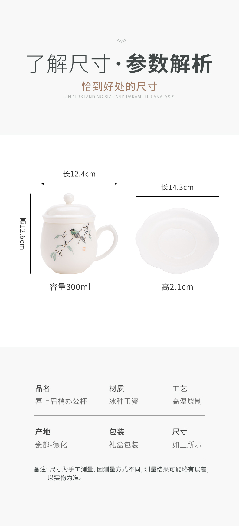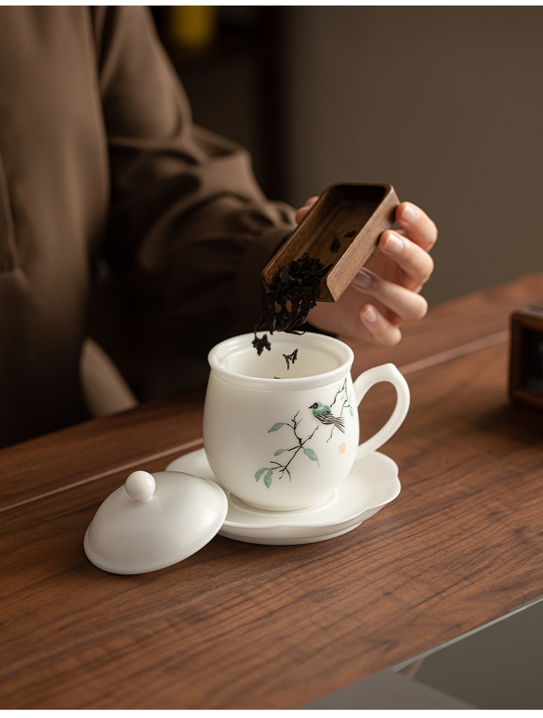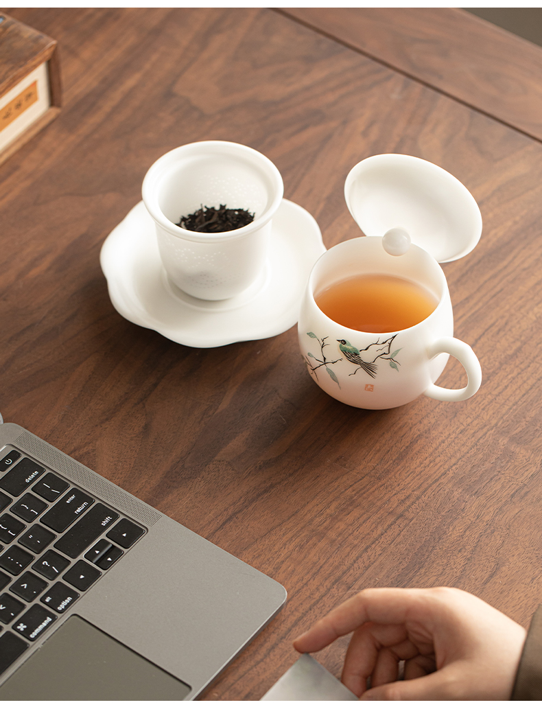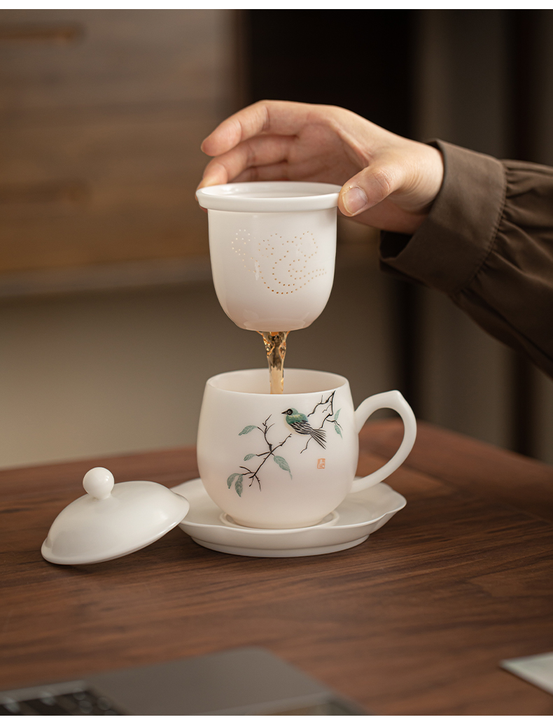 苏氏陶瓷(SUSHI CERAMICS) 素烧手绘喜上眉梢办公杯 J1268 300ml 白色(单位:套)