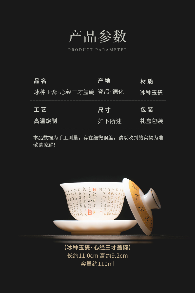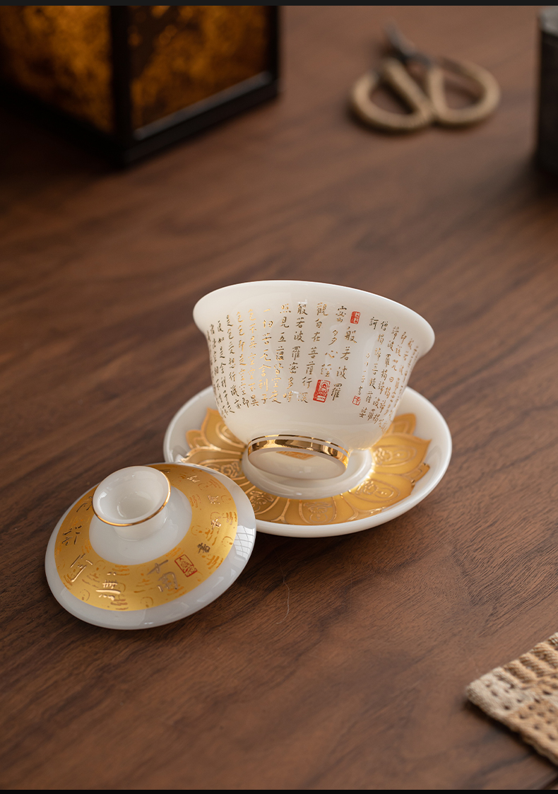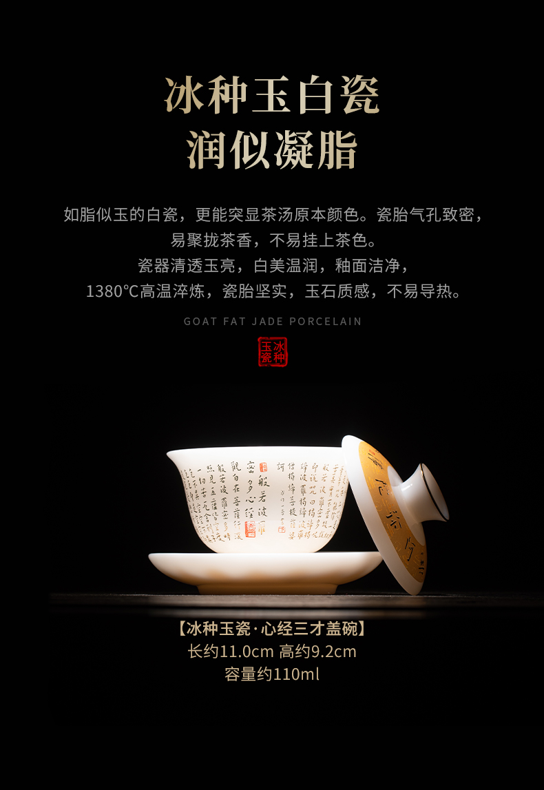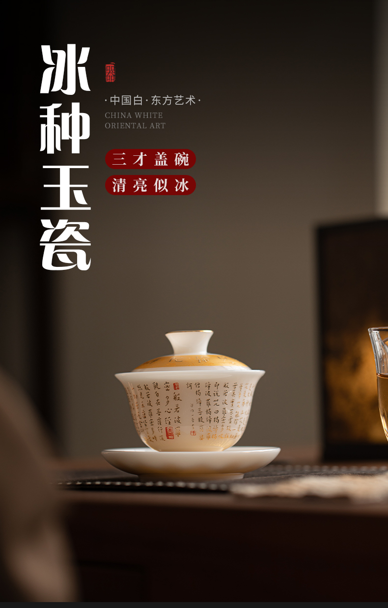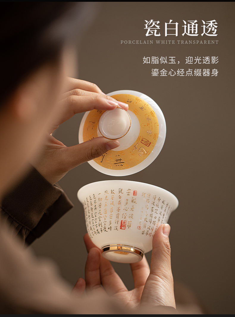 苏氏陶瓷(SUSHI CERAMICS) 冰种心经三才盖碗礼盒 J1261 110ml 白色(单位:套)