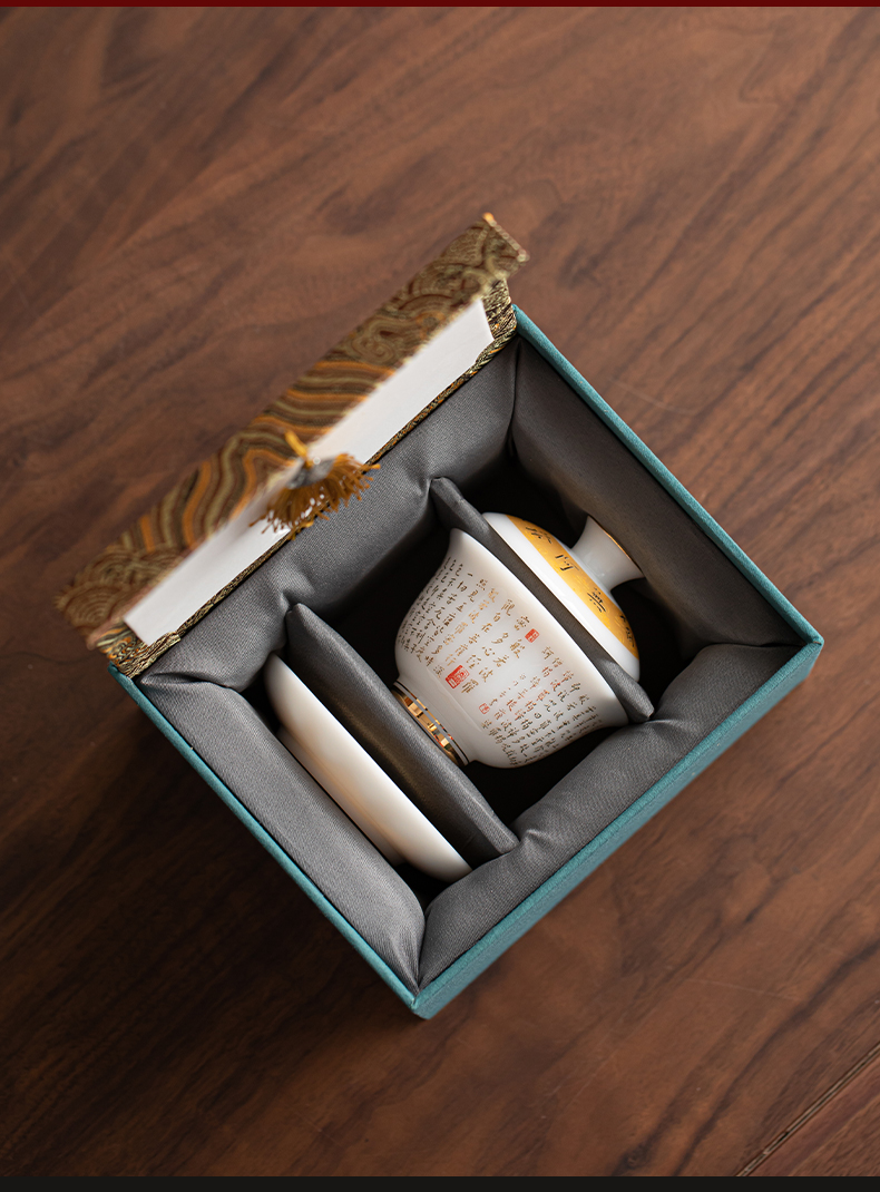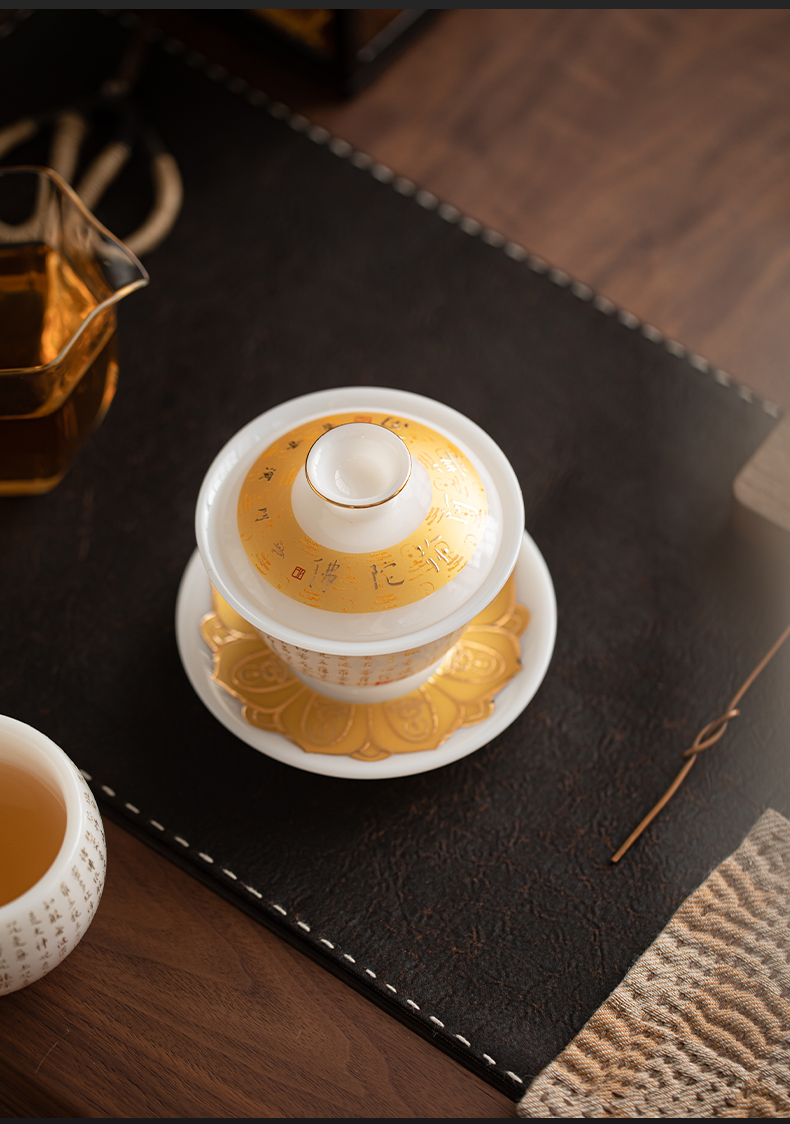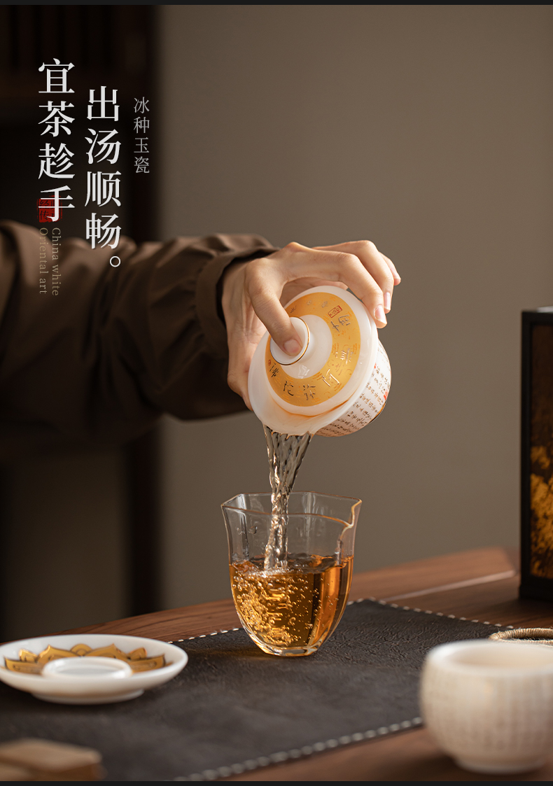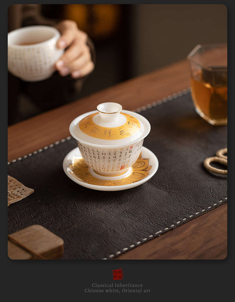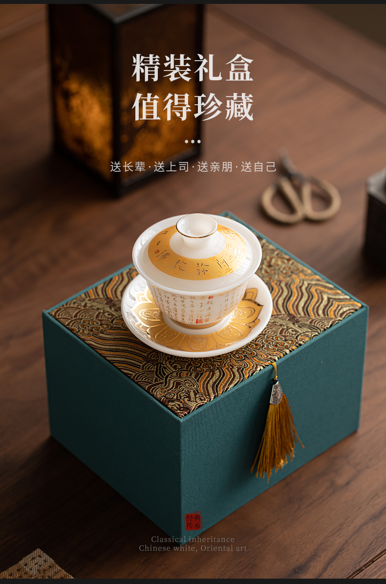 苏氏陶瓷(SUSHI CERAMICS) 冰种心经三才盖碗礼盒 J1261 110ml 白色(单位:套)