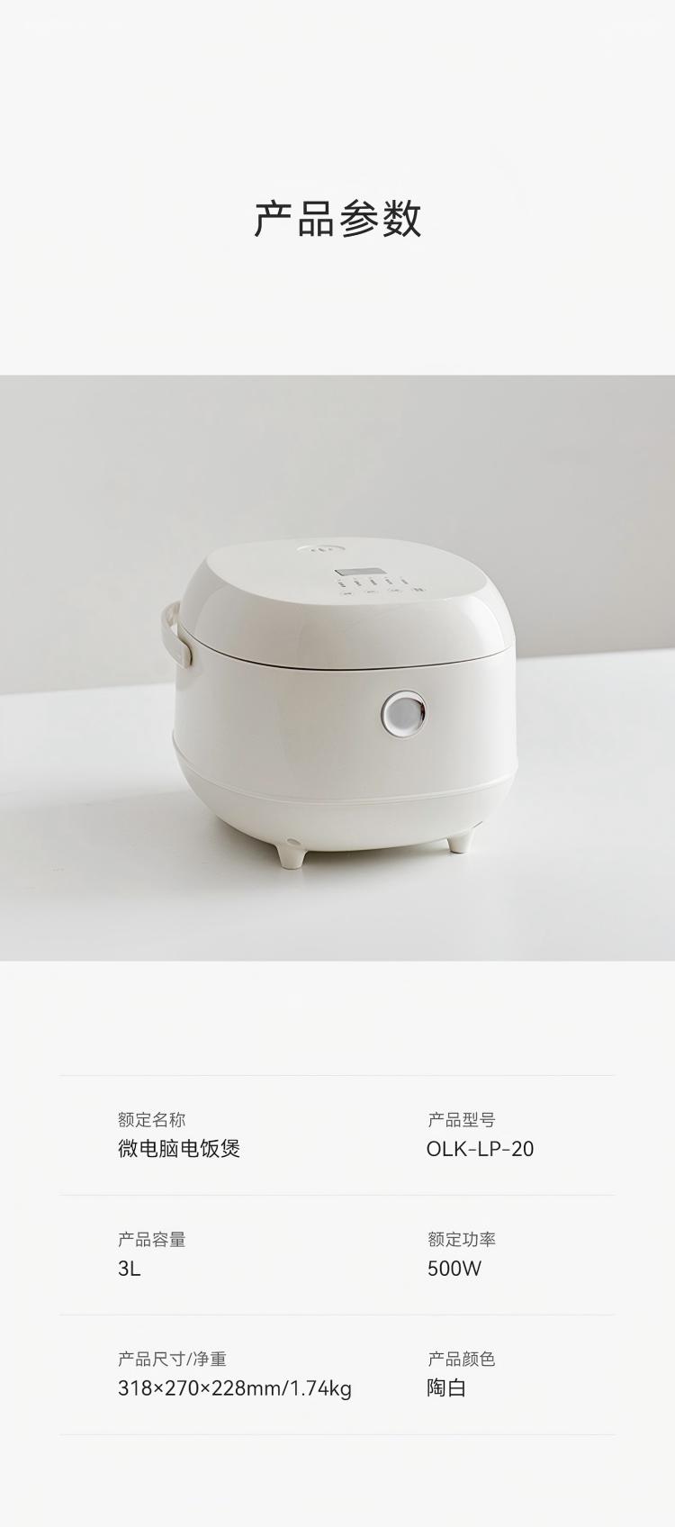 欧莱克/OLAYKS 智能电饭煲 OLK-LP-20 3L 陶白(单位:台)