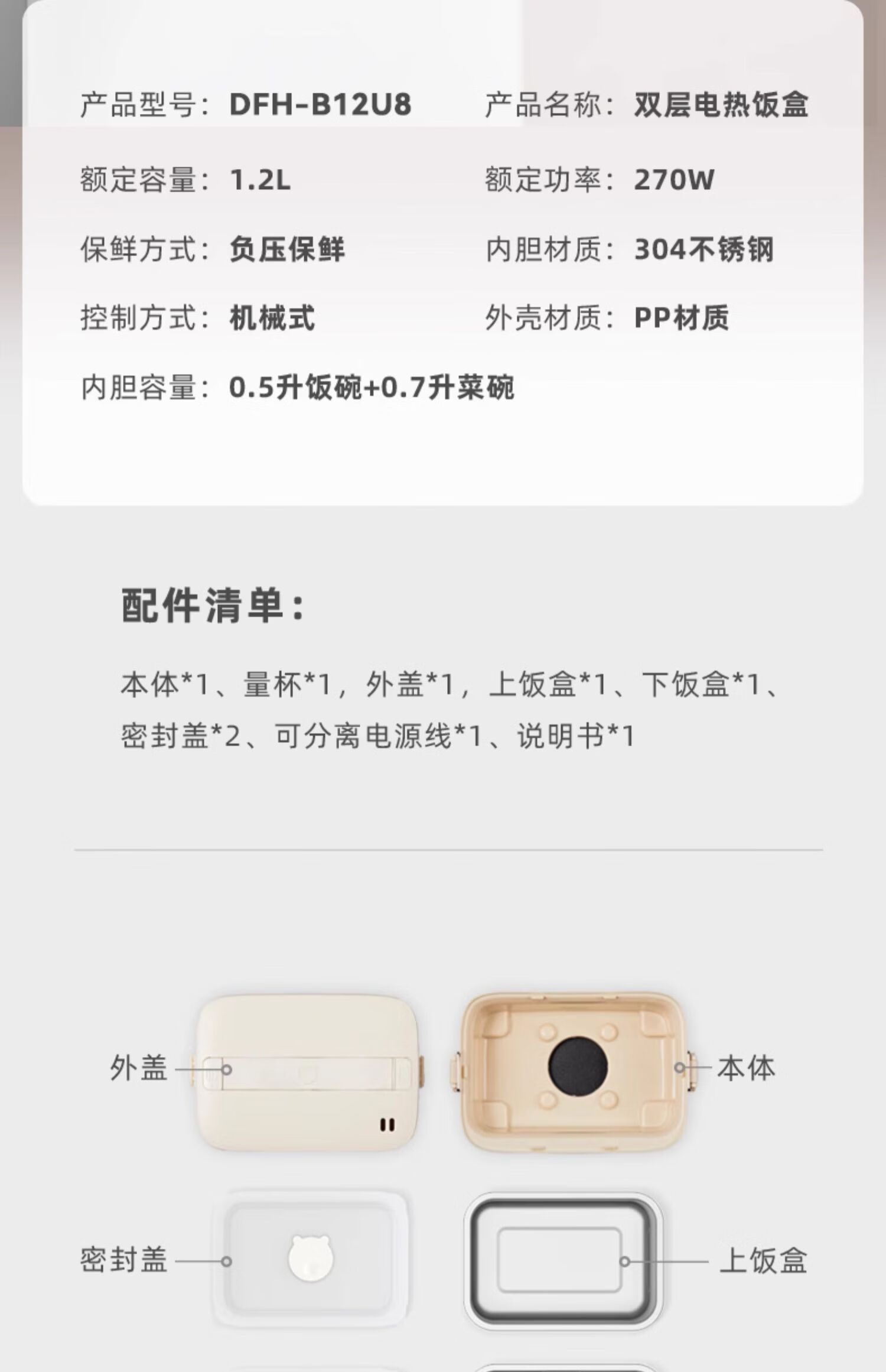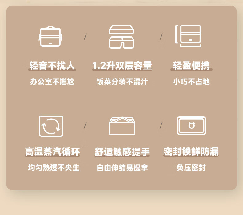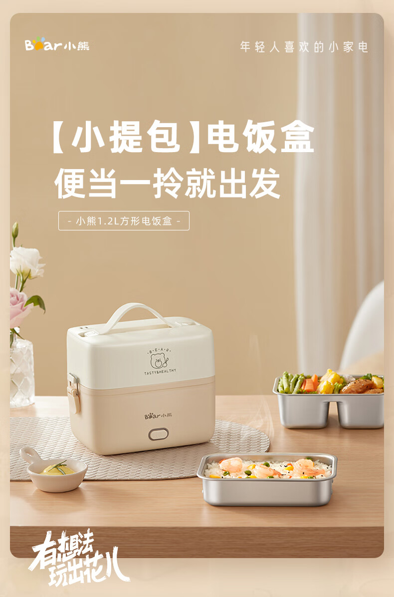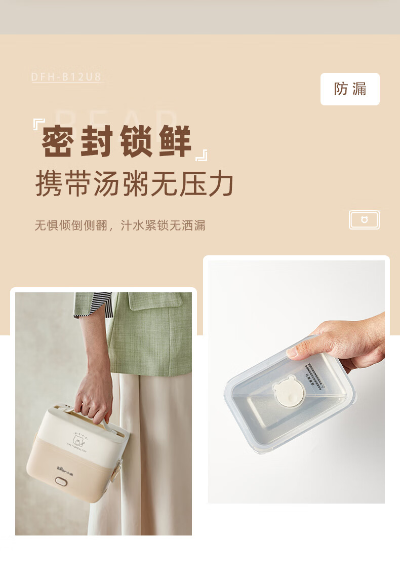 小熊(Bear) 蒸煮饭盒 DFH-B12U8 1.2L 米色(单位:台)