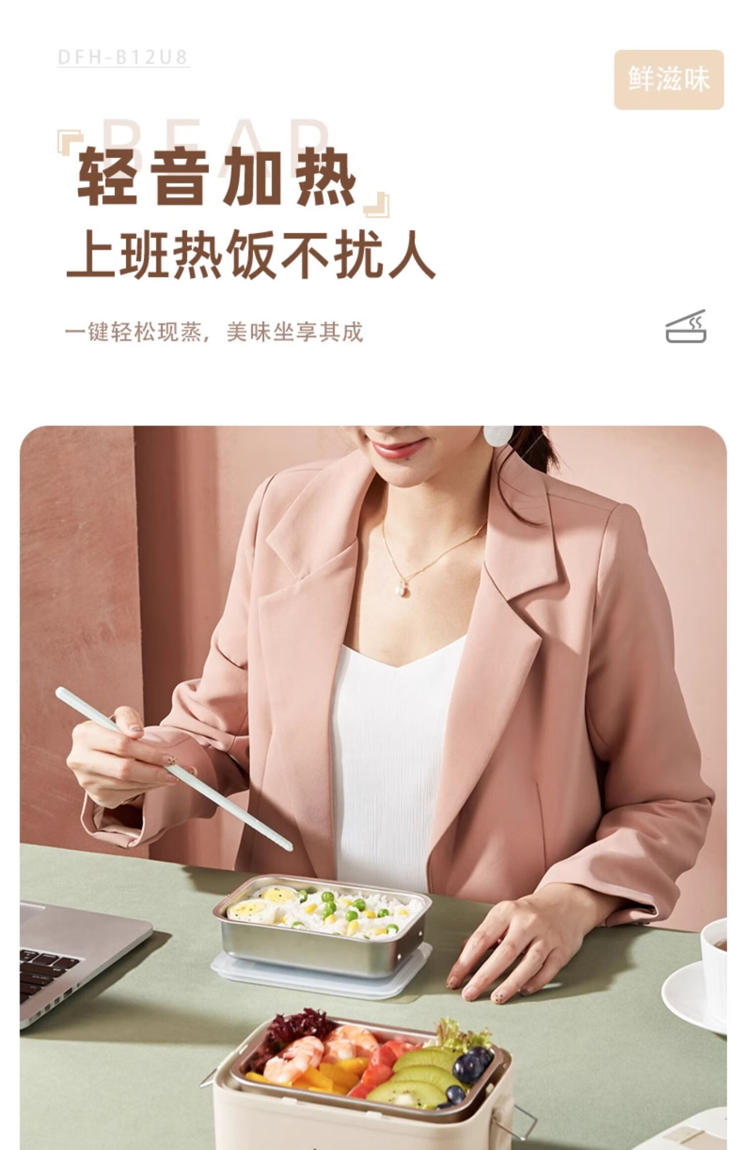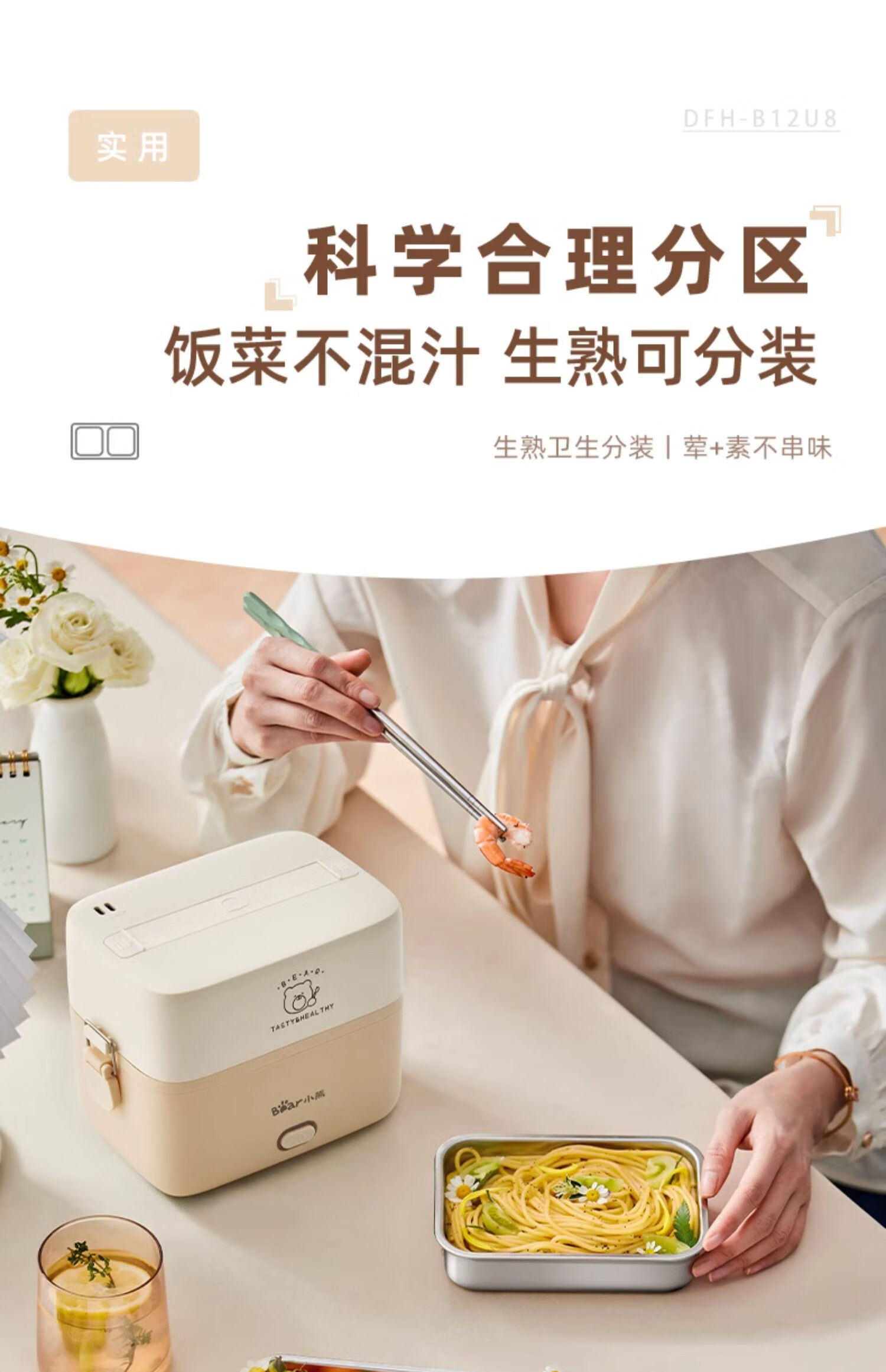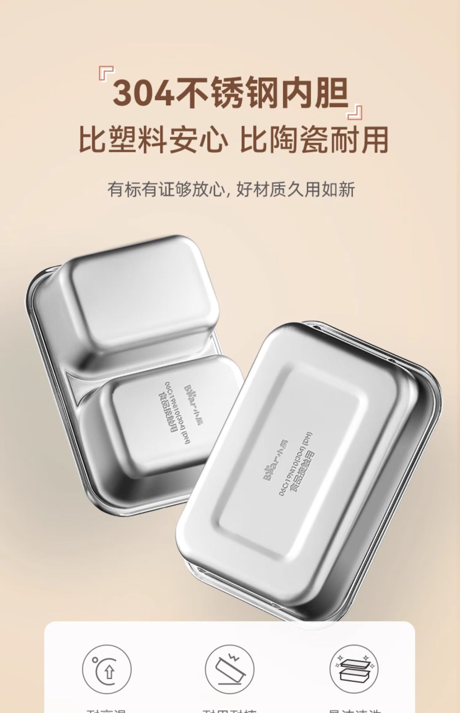 小熊(Bear) 蒸煮饭盒 DFH-B12U8 1.2L 米色(单位:台)