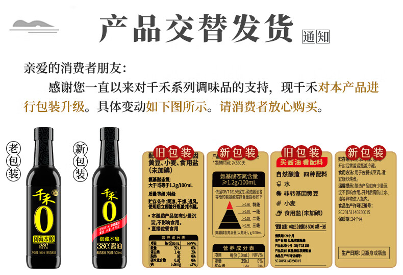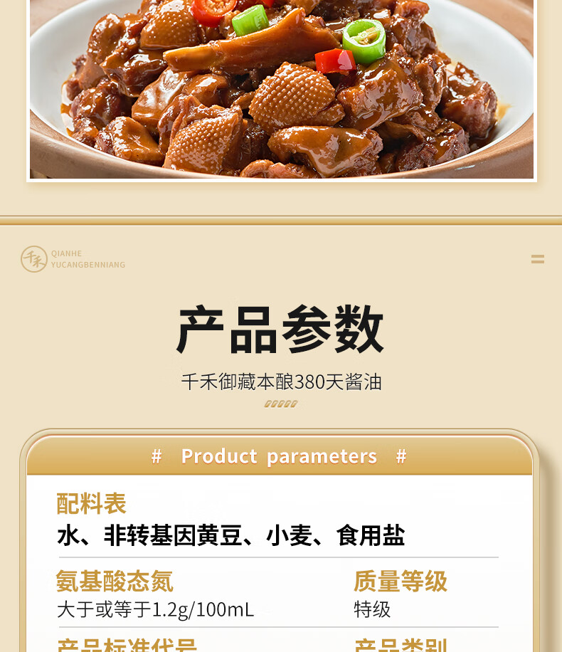 千禾 调味 御藏本酿380天酱油 500mL 黑色(单位:瓶)