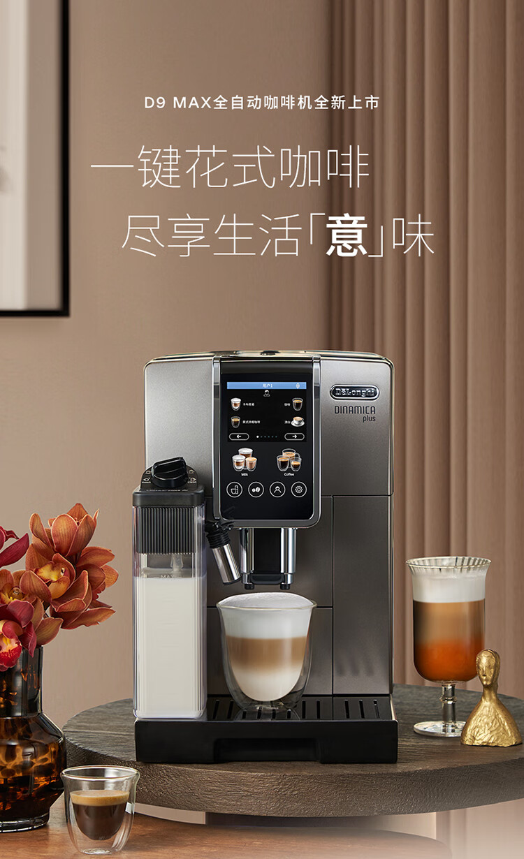 德龙(DELONGHI) 家用全自动全触摸彩屏泵压咖啡机 D9 Max 1.8L 灰色(单位:台)