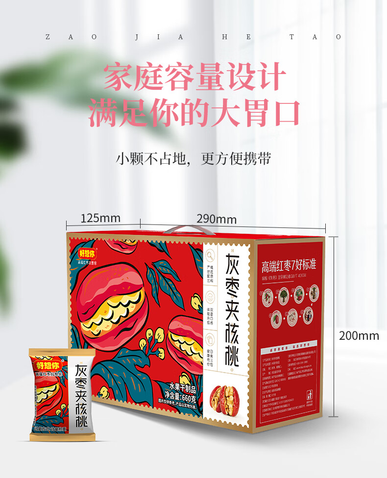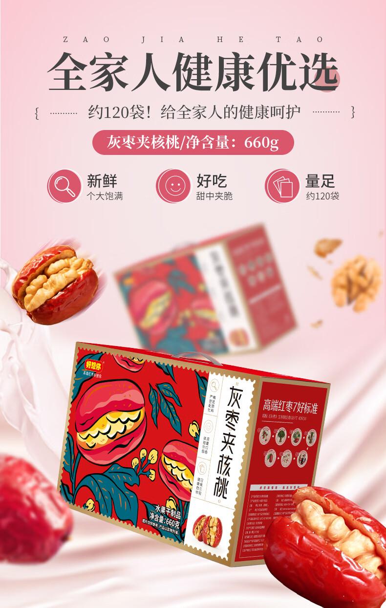好想你 枣仁派休闲零食 灰枣夹核桃 660g*1盒 混色(单位:盒)