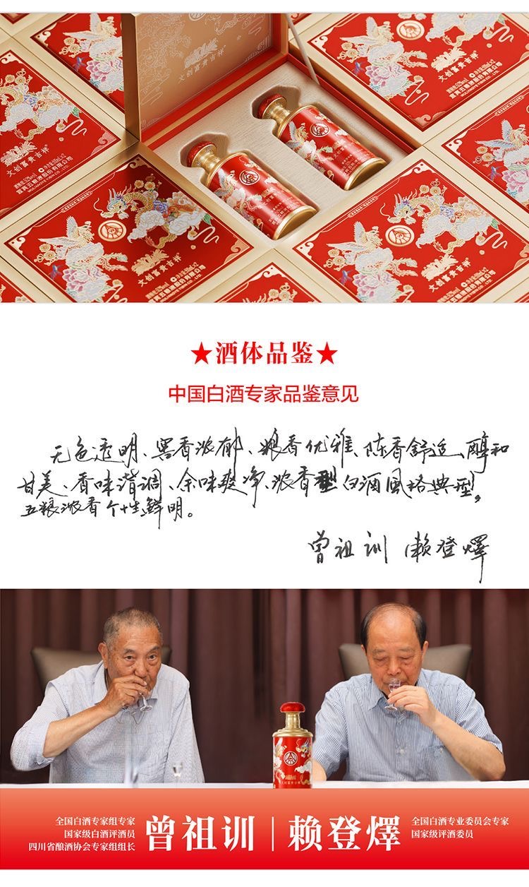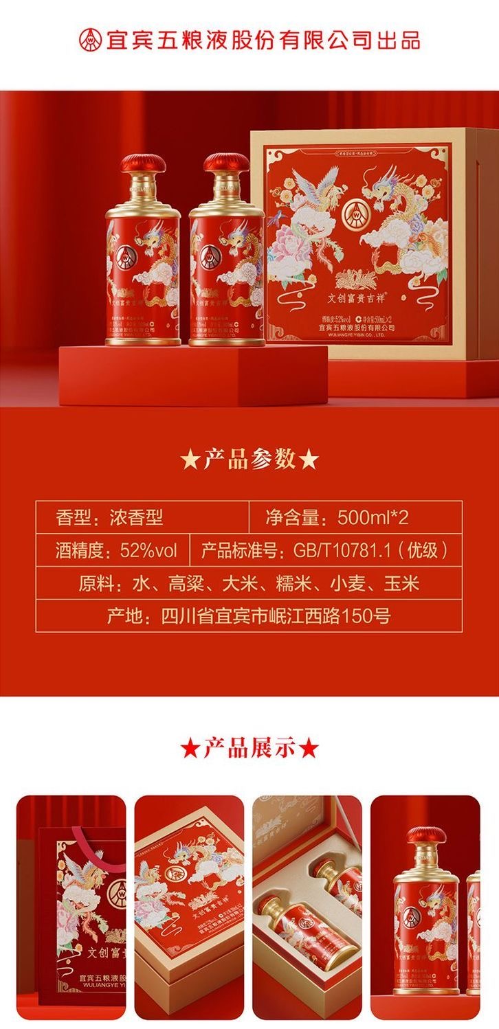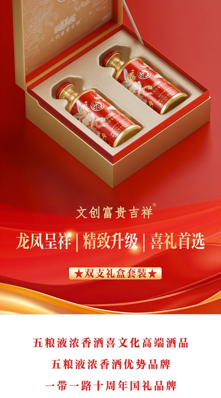 五粮液 富贵吉祥文创柔和双支装 52°浓香型白酒 500ml*2 红色(单位:盒)