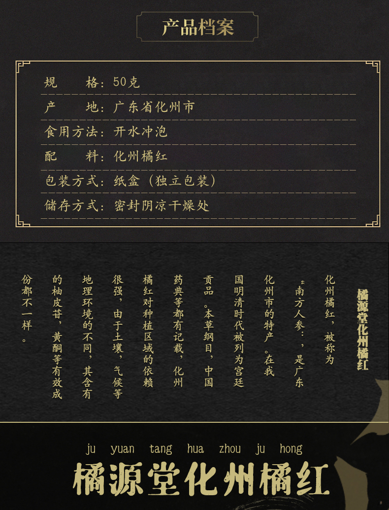 橘源堂 化州橘红正一品橘红皮 国家地理标志产品 20包/盒 藏青色(单位:盒)