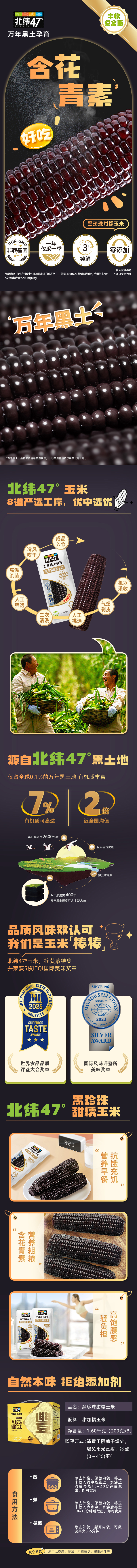 北纬47°(BEIWEI) 黑珍珠甜糯玉米 (丰收纪念版) 200g*8/盒 黄色(单位:盒)