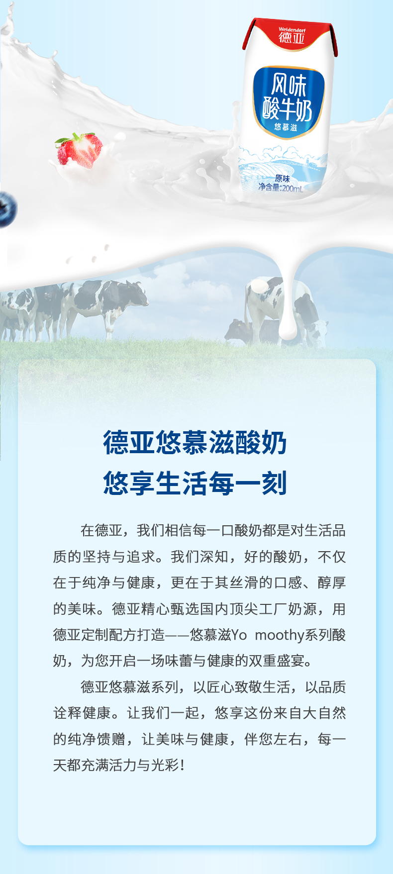 德亚(Weidendorf) 风味酸牛奶 锦绣凝华 200ml*10 尼加拉蓝(单位:盒)
