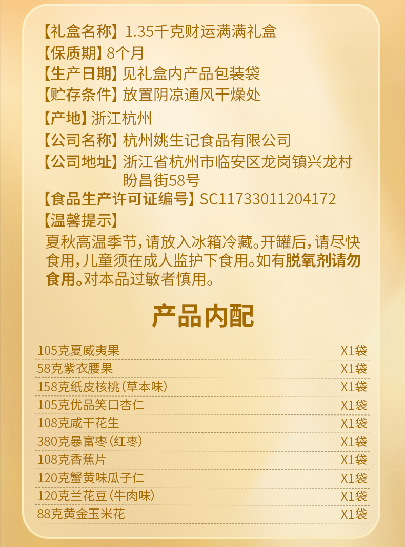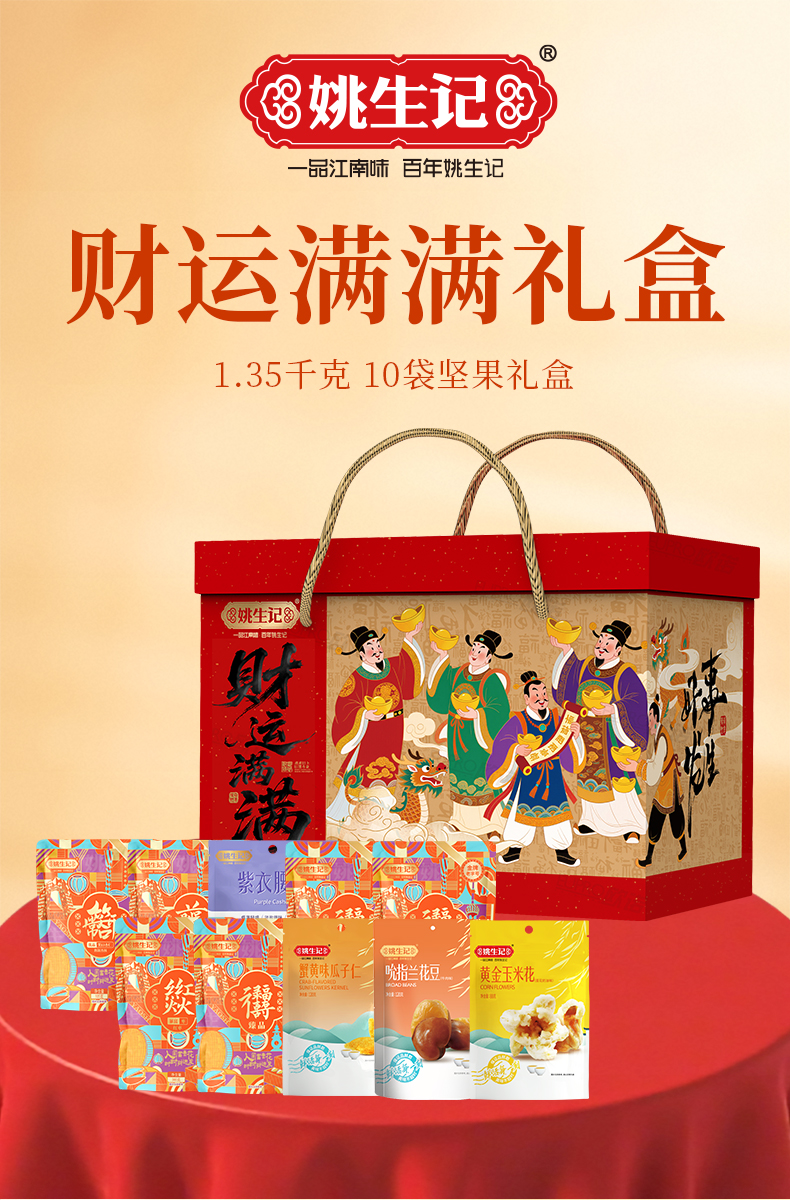 姚生记 财神*财运满满坚果 礼盒 1350g 拿铁色(单位:盒)