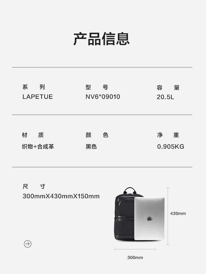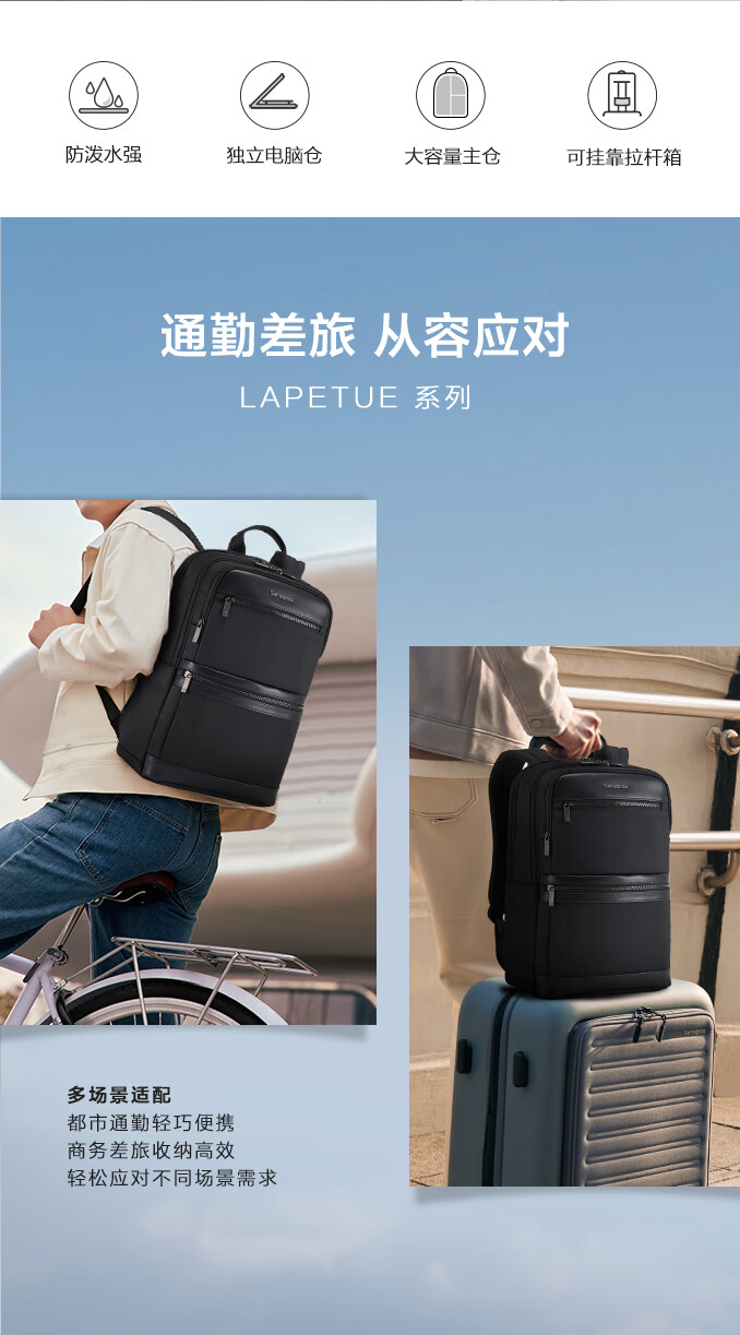 新秀丽(Samsonite) LAPETUE 系列双肩包 NV6*09010 16英寸 黑色(单位:个)