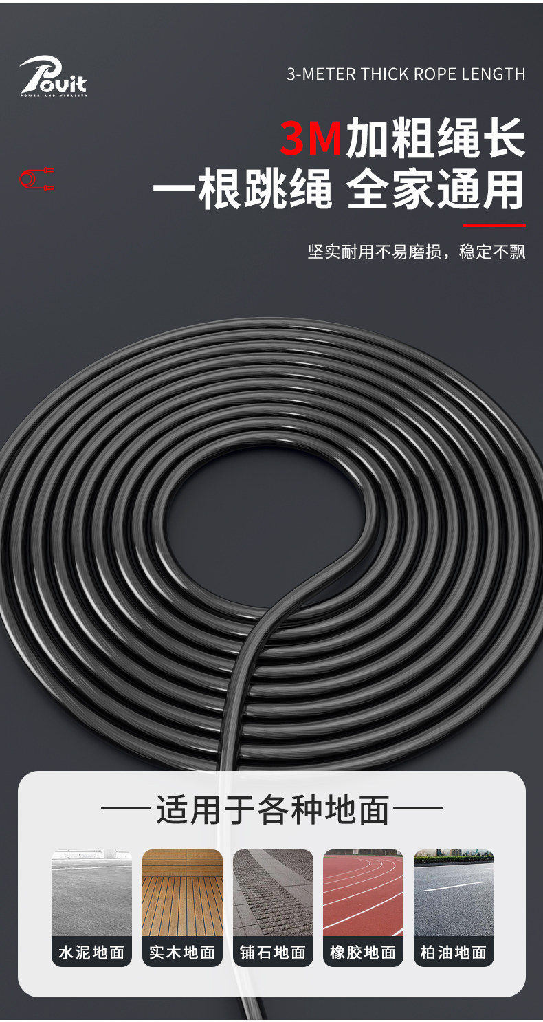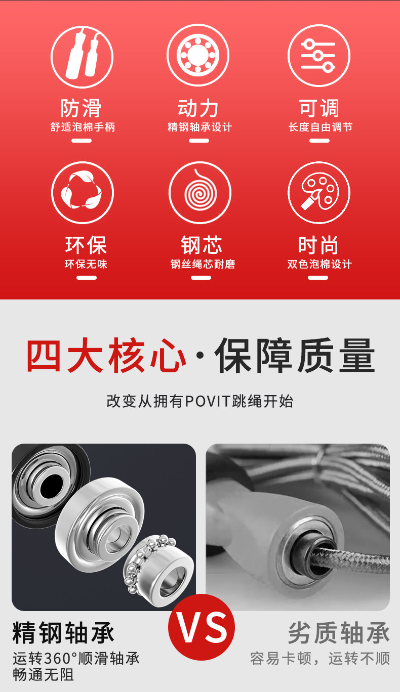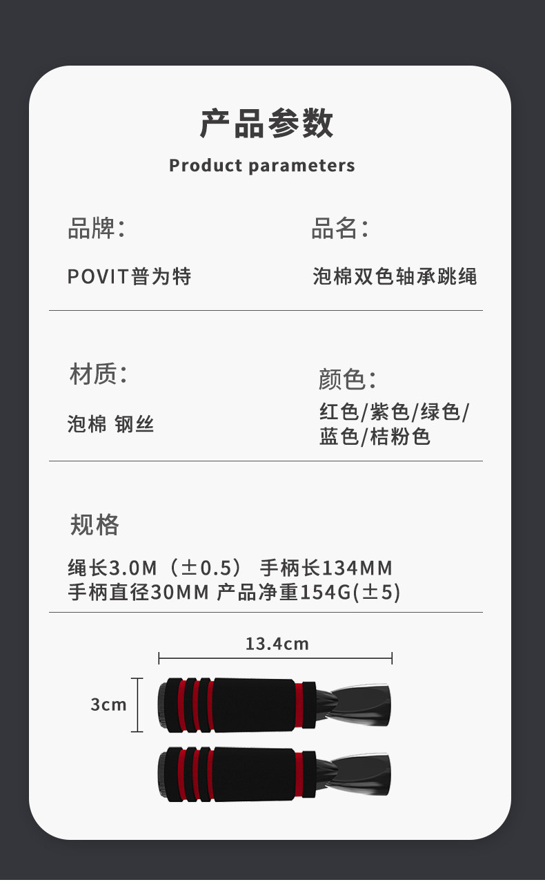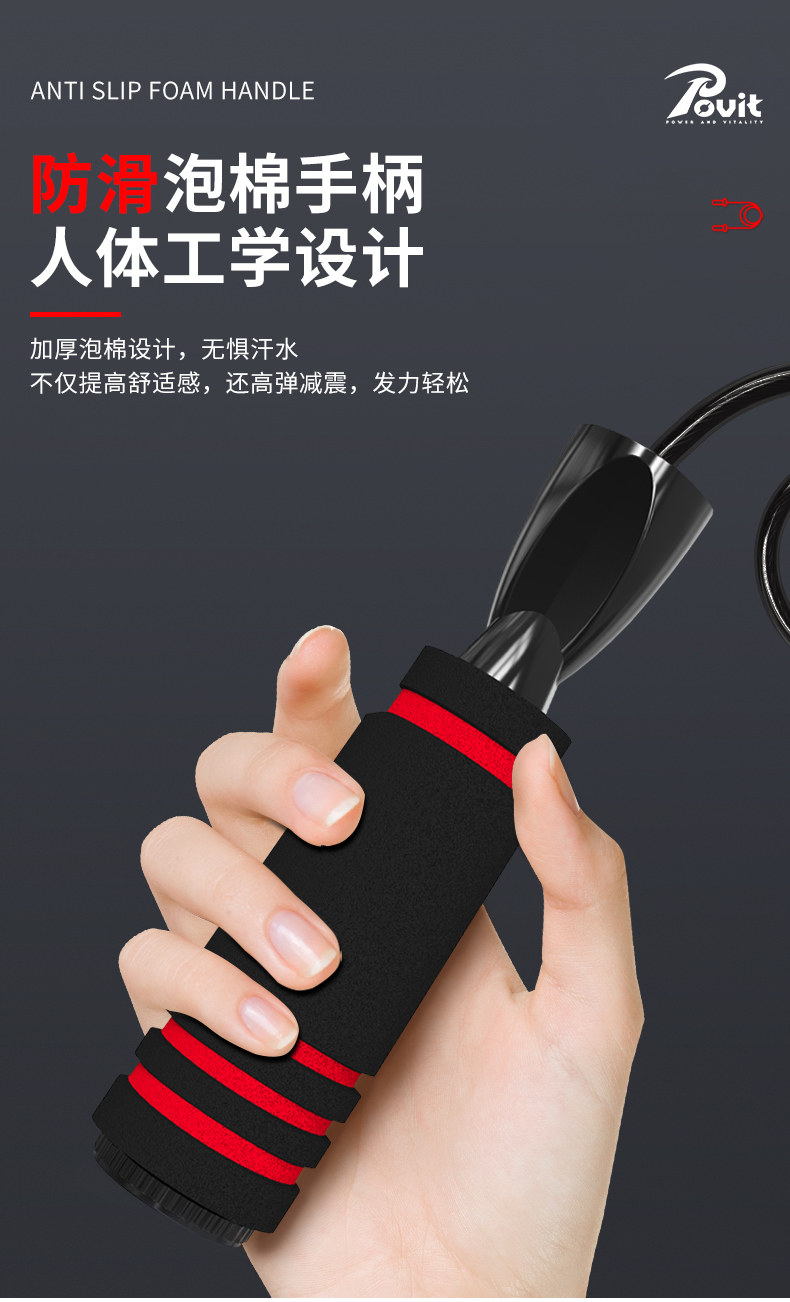 普为特(POVIT) 钢丝跳绳健身减肥运动成人竞速跳绳燃脂绳 P-263OG 154g 桔色(单位:条)