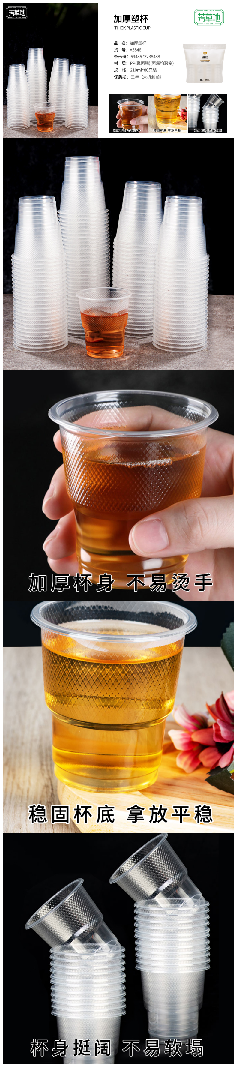 芳草地 一次性塑料杯 A38488FCD 210ml*4.3克*80个/袋*2 白色(单位:组)