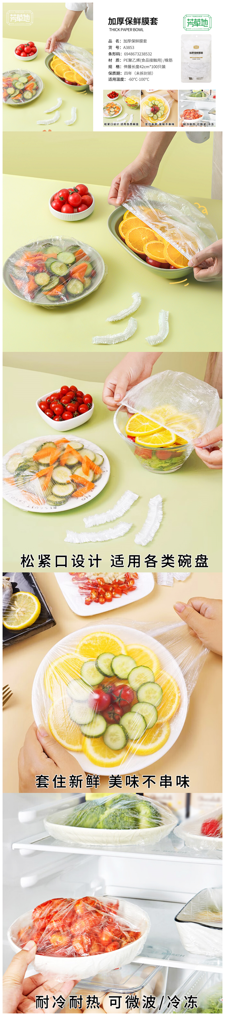 芳草地 一次性保鲜膜 A38532FCD 1.6克/42cm*100个/袋*2 白色(单位:组)