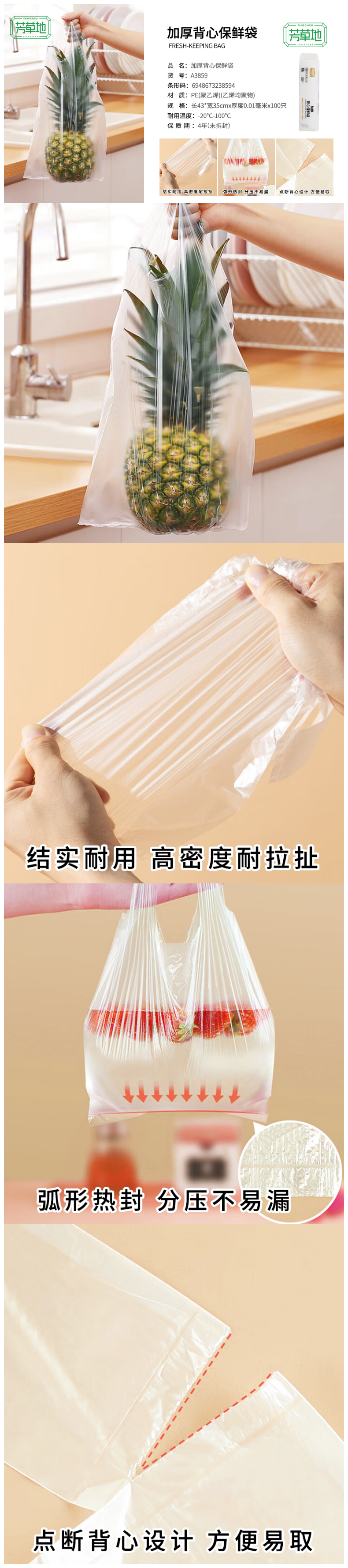芳草地 一次性保鲜袋 A38594FCD 35*43cm*100个/包*2 厚度0.01mm*2 白色(单位:组)