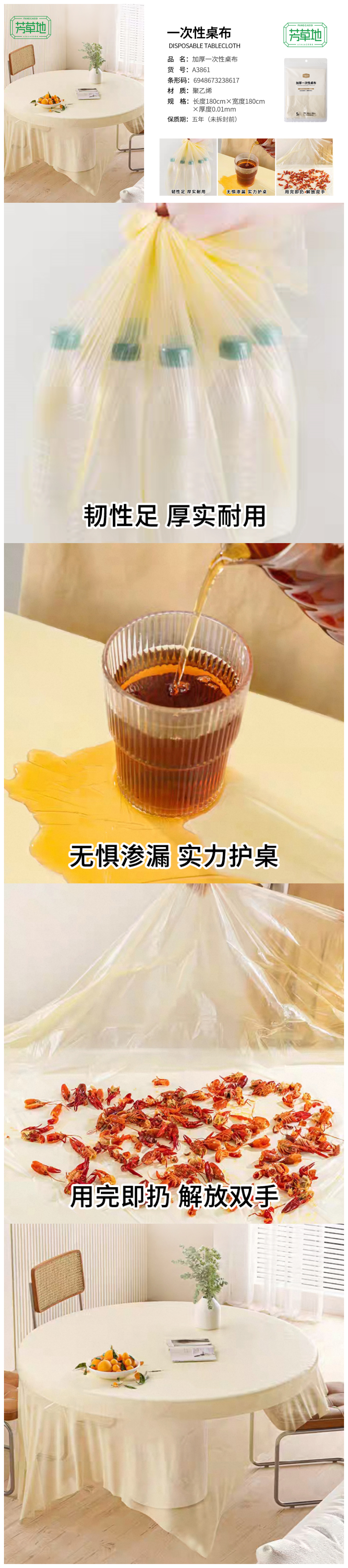 芳草地 一次性桌布 A38617FCD 180*180cm*5张/包*2 白色(单位:组)