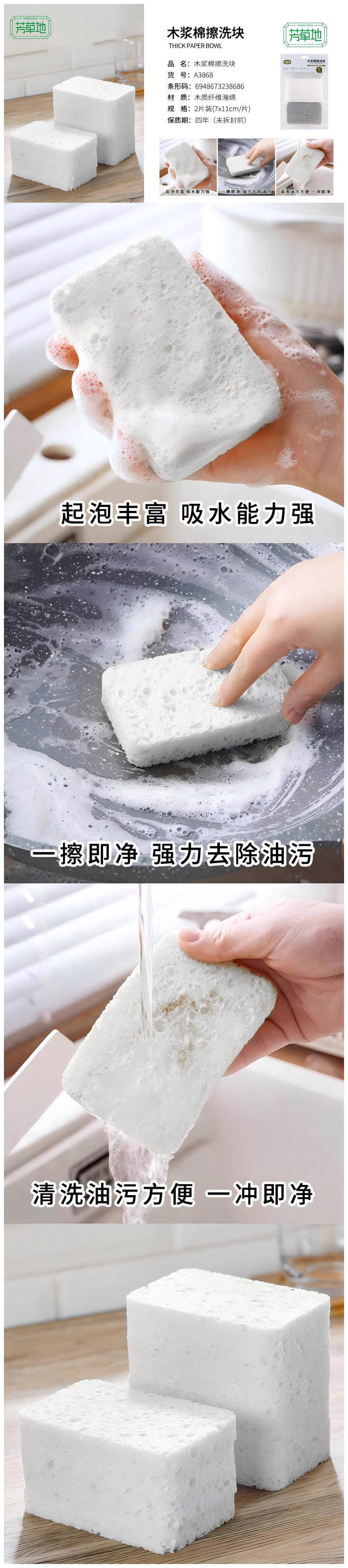 芳草地 木浆棉擦洗块 A38686FCD 2片/袋*2 白色(单位:组)