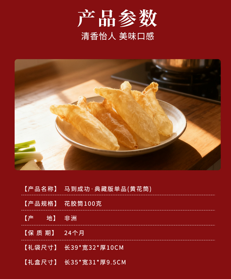 宝堂马氏铺子 马到成功典藏版-花胶筒礼盒 非洲花胶筒 100克 莓果色(单位:盒)