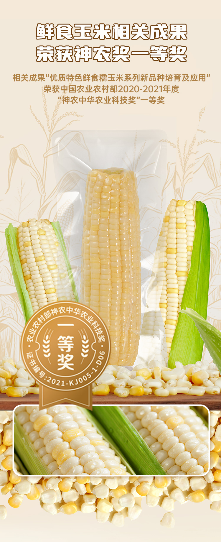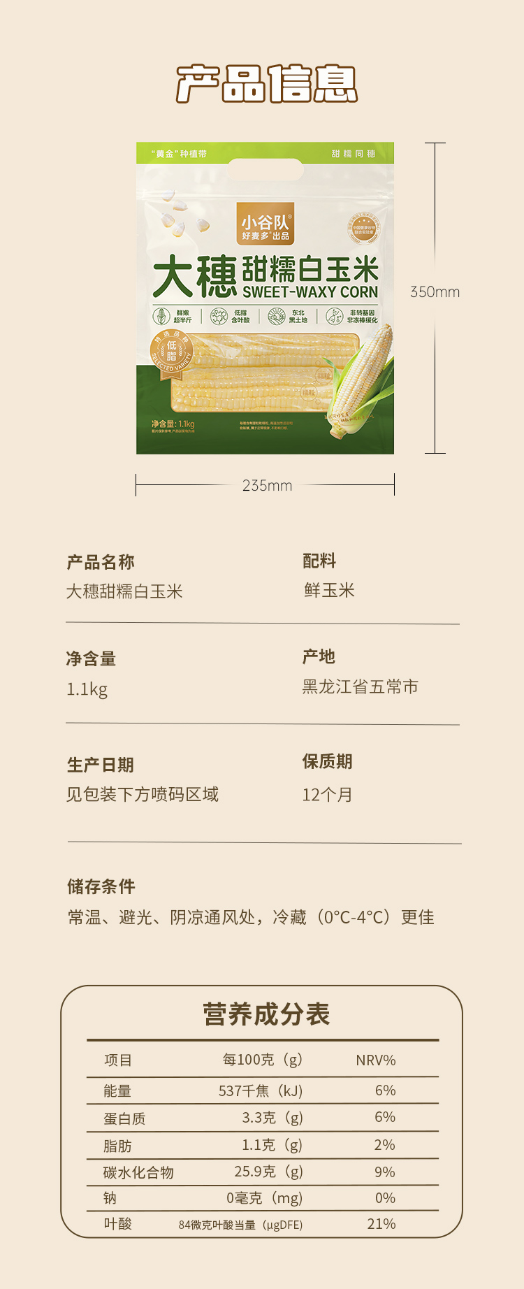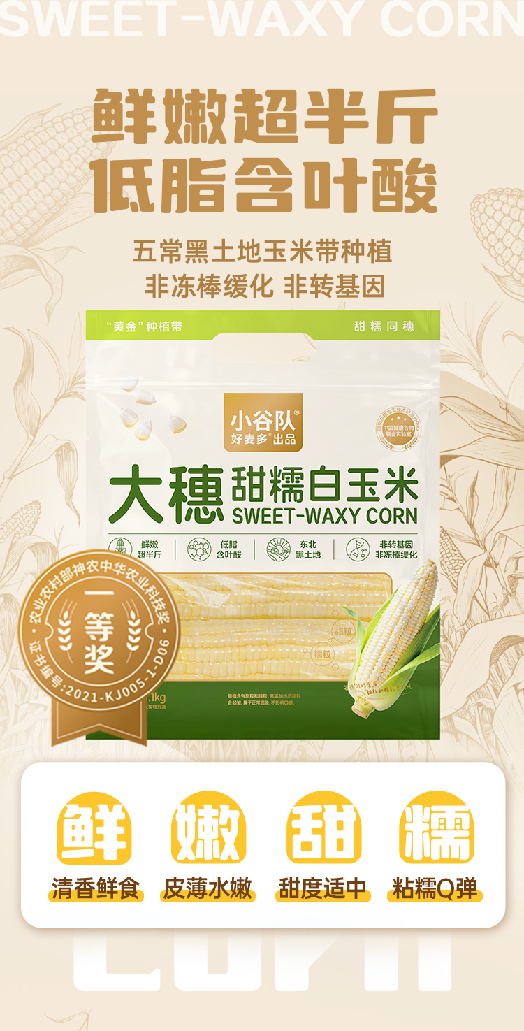 好麦多(HONlife) 营养即食大穗甜糯玉米1.1kg 香甜软糯 280g*4棒 奶茶杏(单位:袋)