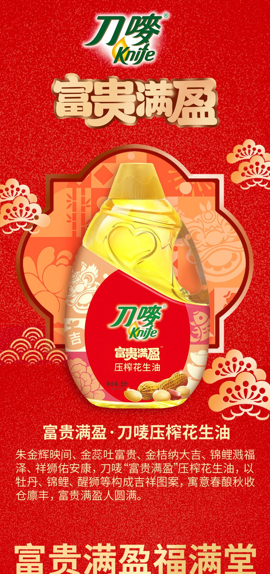 刀唛(Knife) 花生油 富贵满盈压榨一级 5L 炫橙色(单位:桶)