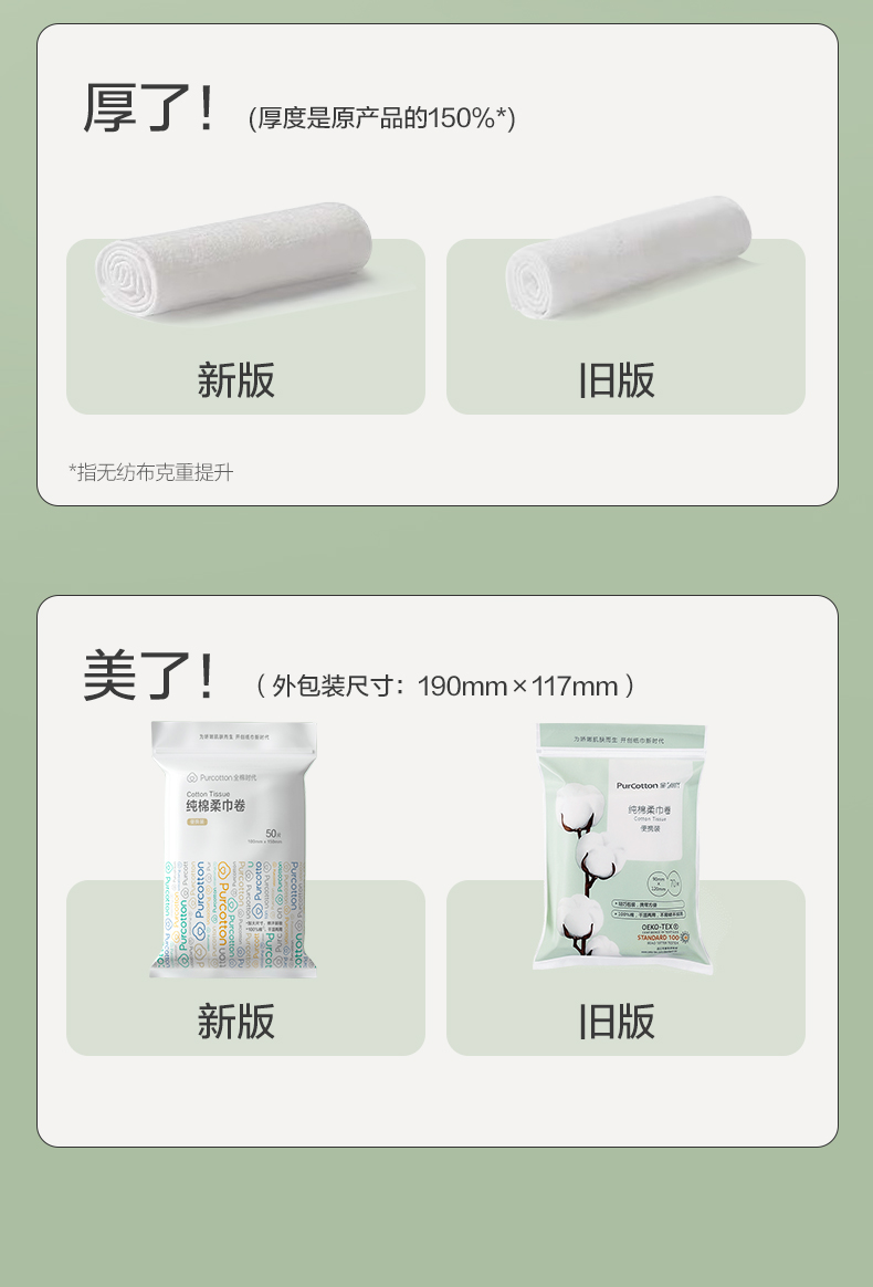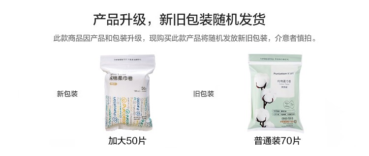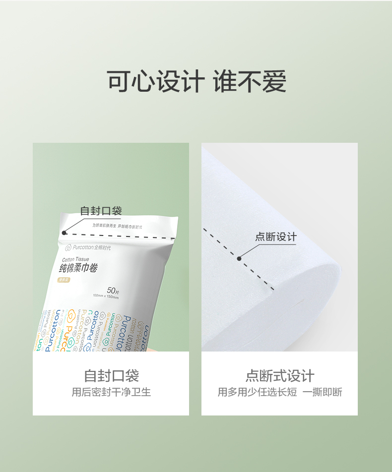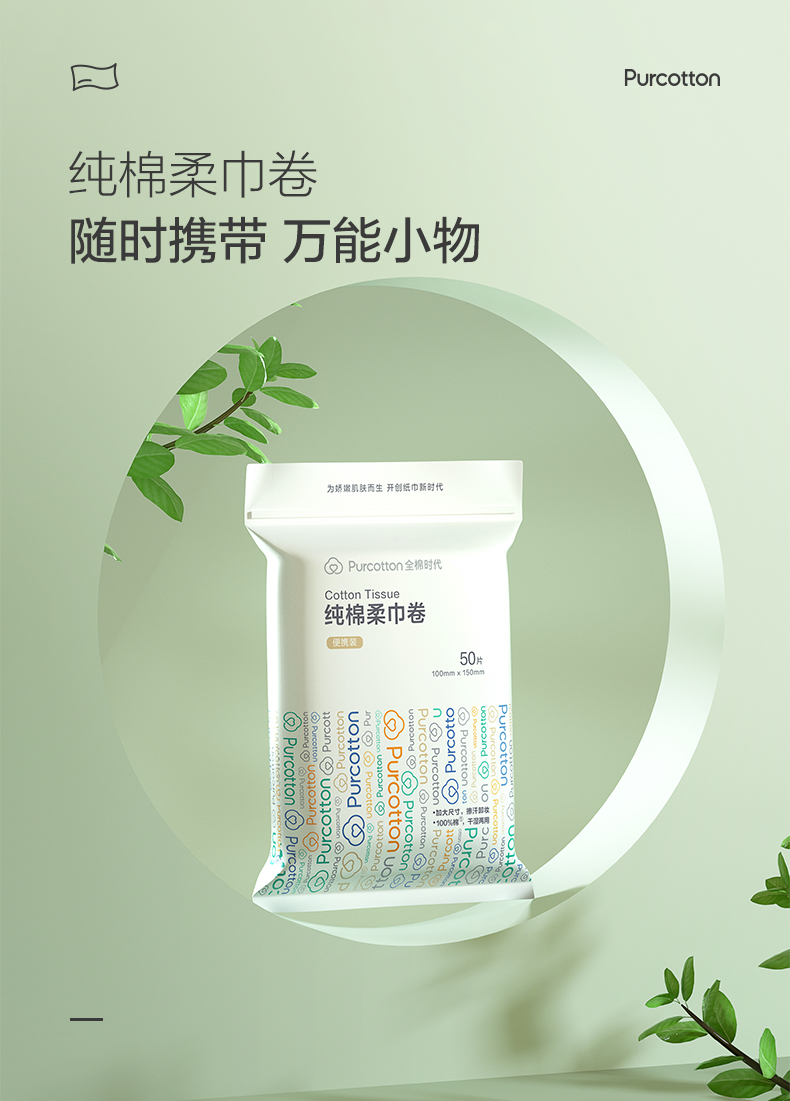 全棉时代纯棉柔巾卷45gsm 100mm×150mm 50片/包 12包/袋(单位:袋) 混色