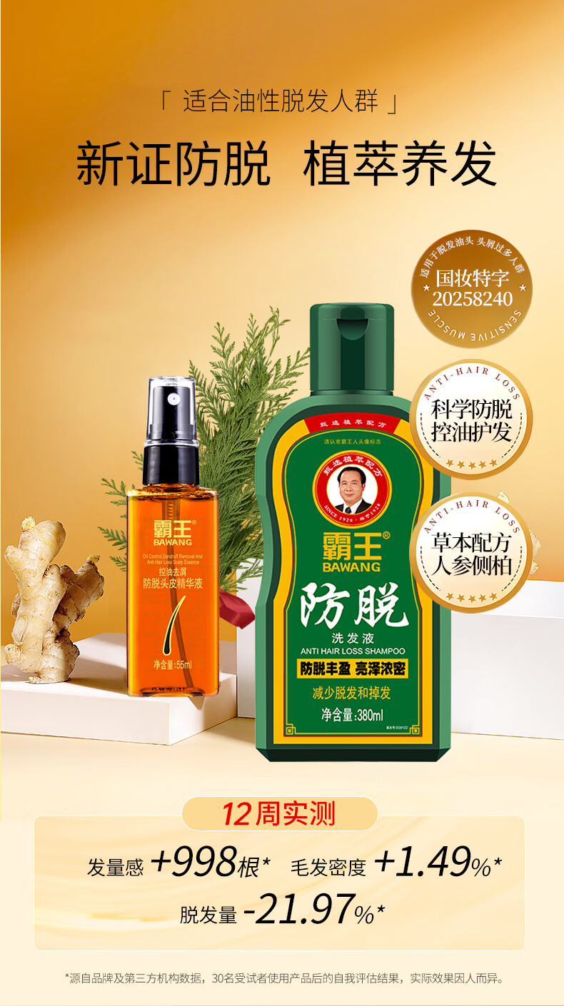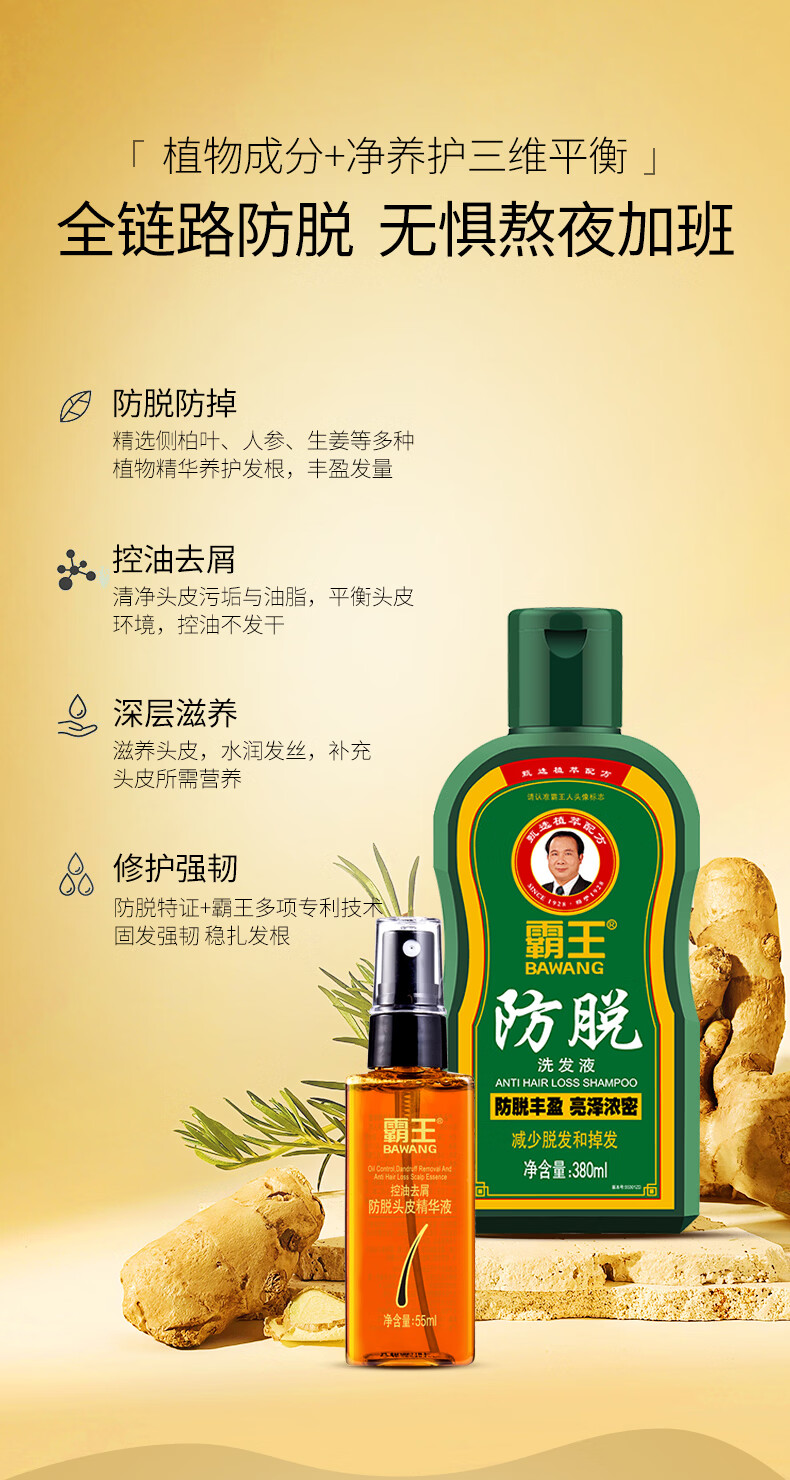 霸王 洗护组合 防脱控油去屑 380ml+55ml 混色(单位:盒)