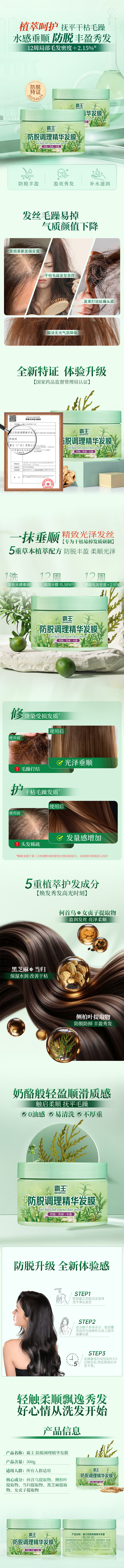 霸王 发膜 防脱调理精华 300g 浅杉绿(单位:罐)