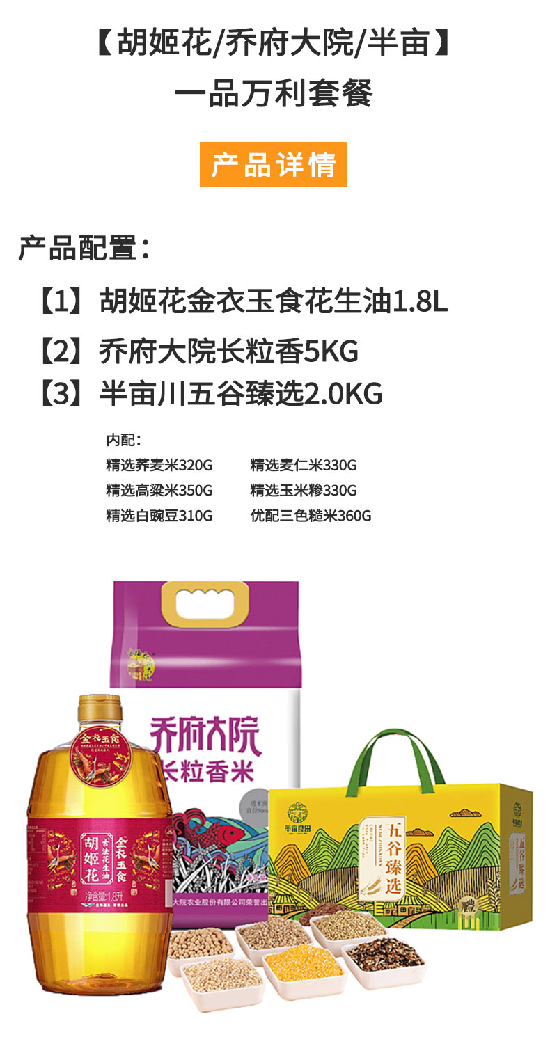 欧丽薇兰 /乔府大院/半亩川-花生油大米杂粮 一品万利组合 8800g 金色(单位:套)
