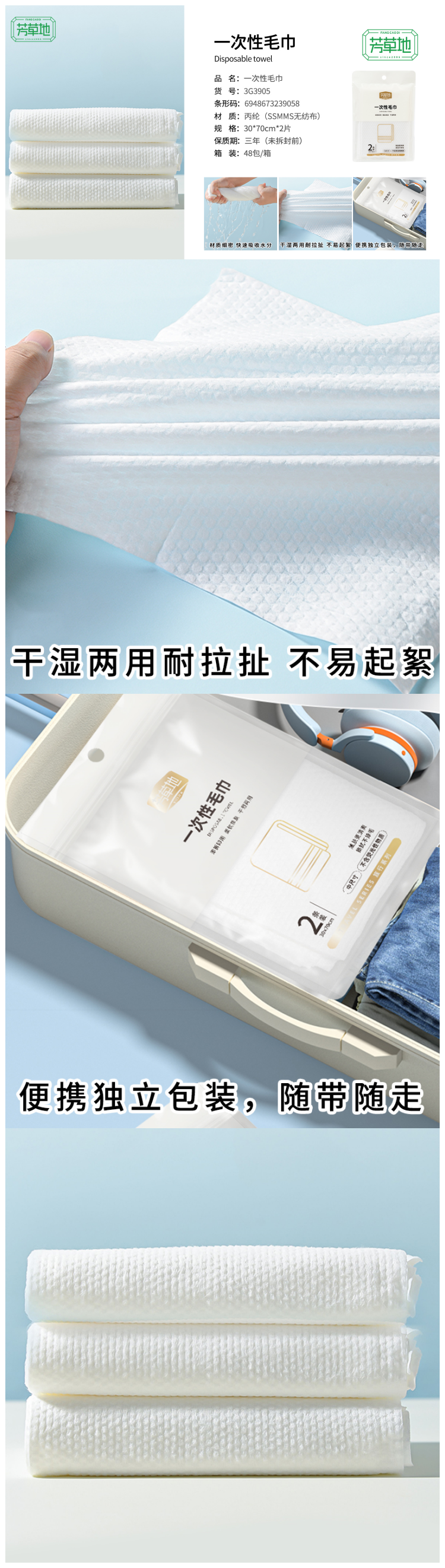 芳草地 一次性毛巾 3G39058FCD 30*70cm*2片/袋*5 白色(单位:组)