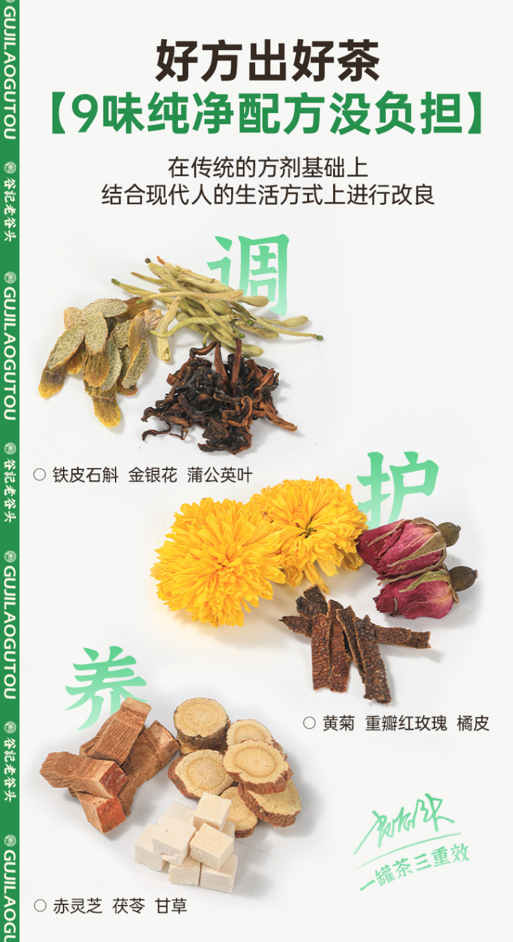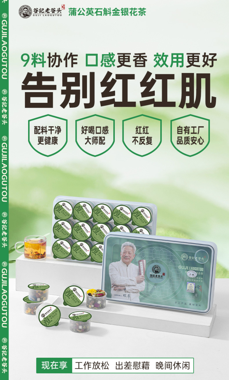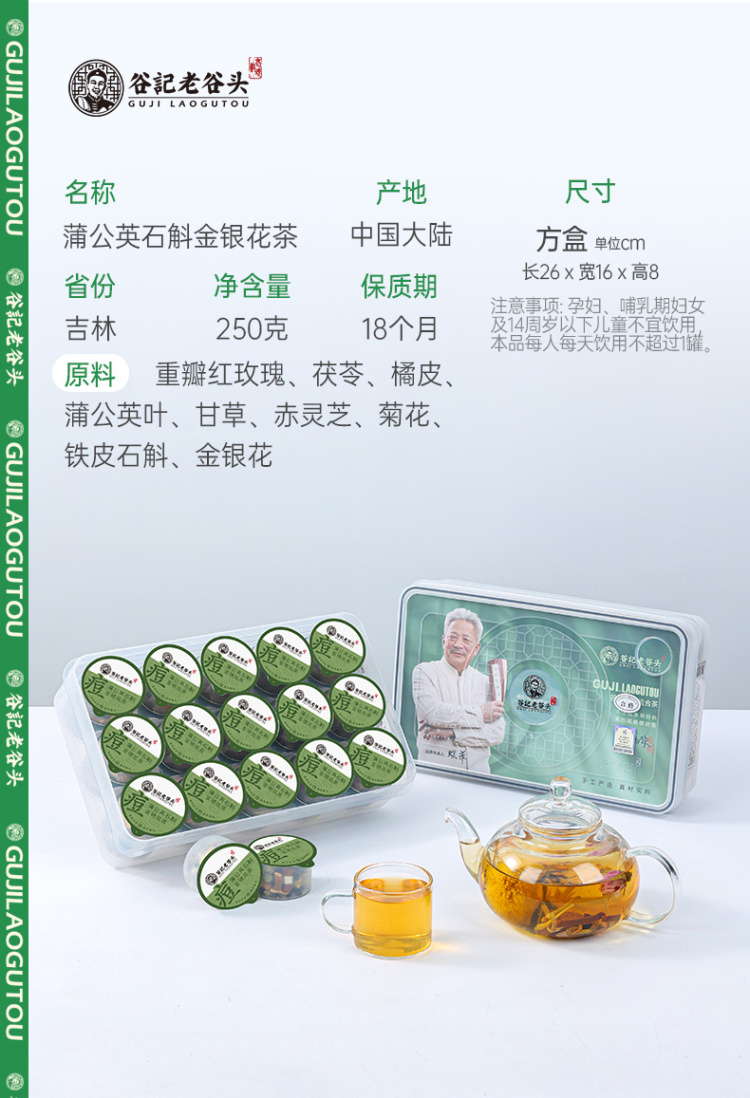 谷记老谷头 方盒蒲公英石斛金银花茶 养生茶 250g 绿色(单位:盒)