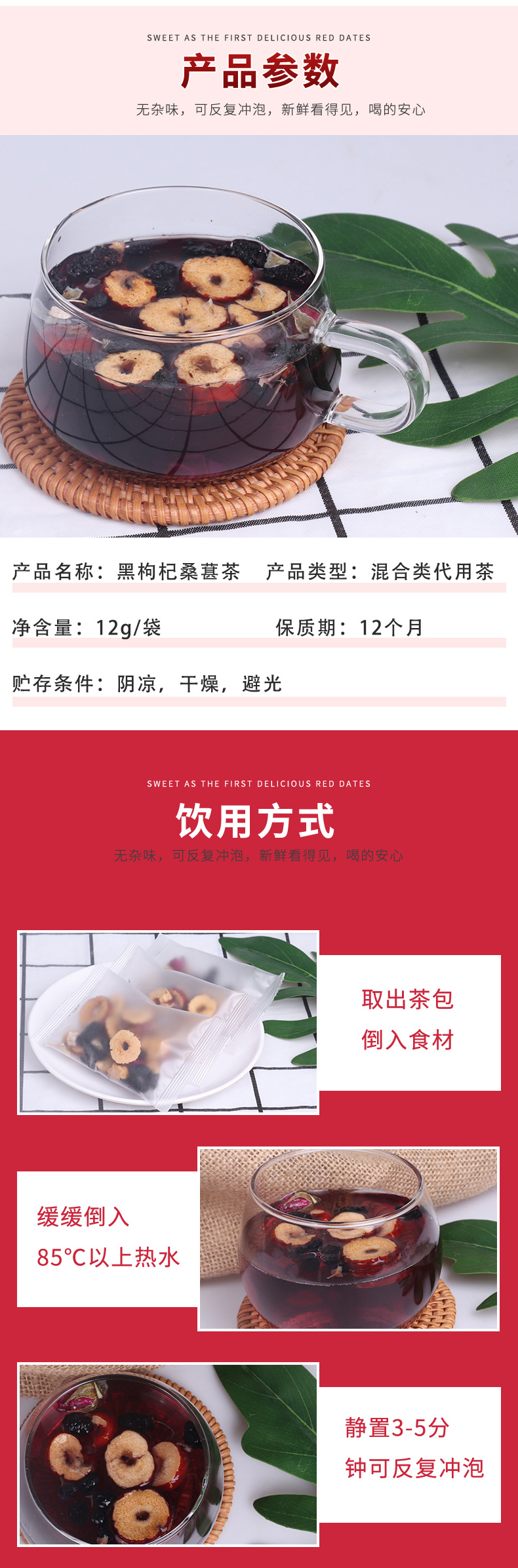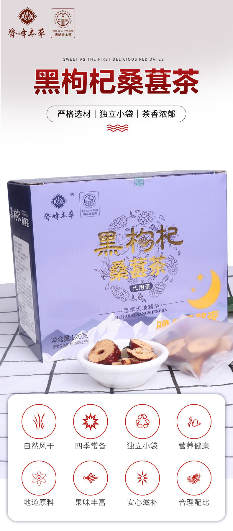 脊峰本草 青海乐都高原黑枸杞桑葚茶 养生茶 120g 紫色(单位:盒)
