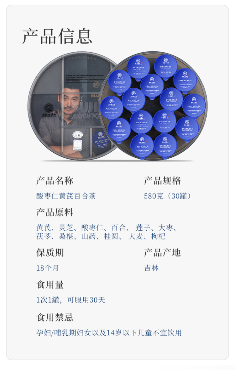 谷记老谷头 圆盒酸枣仁黄芪百合茶 养生茶 580g 蓝色(单位:盒)