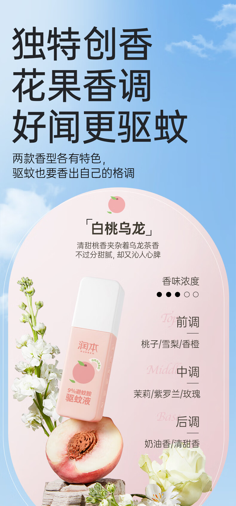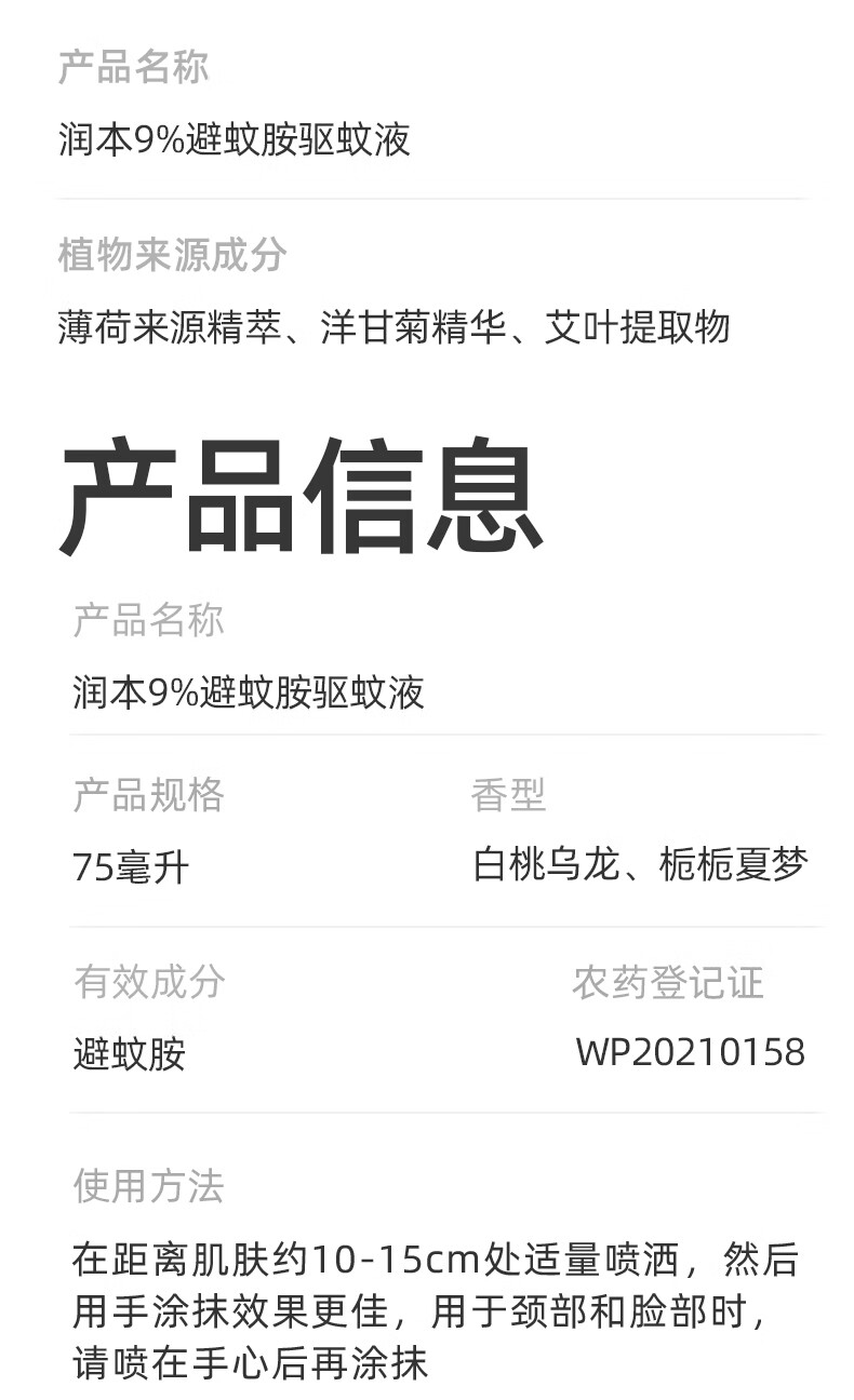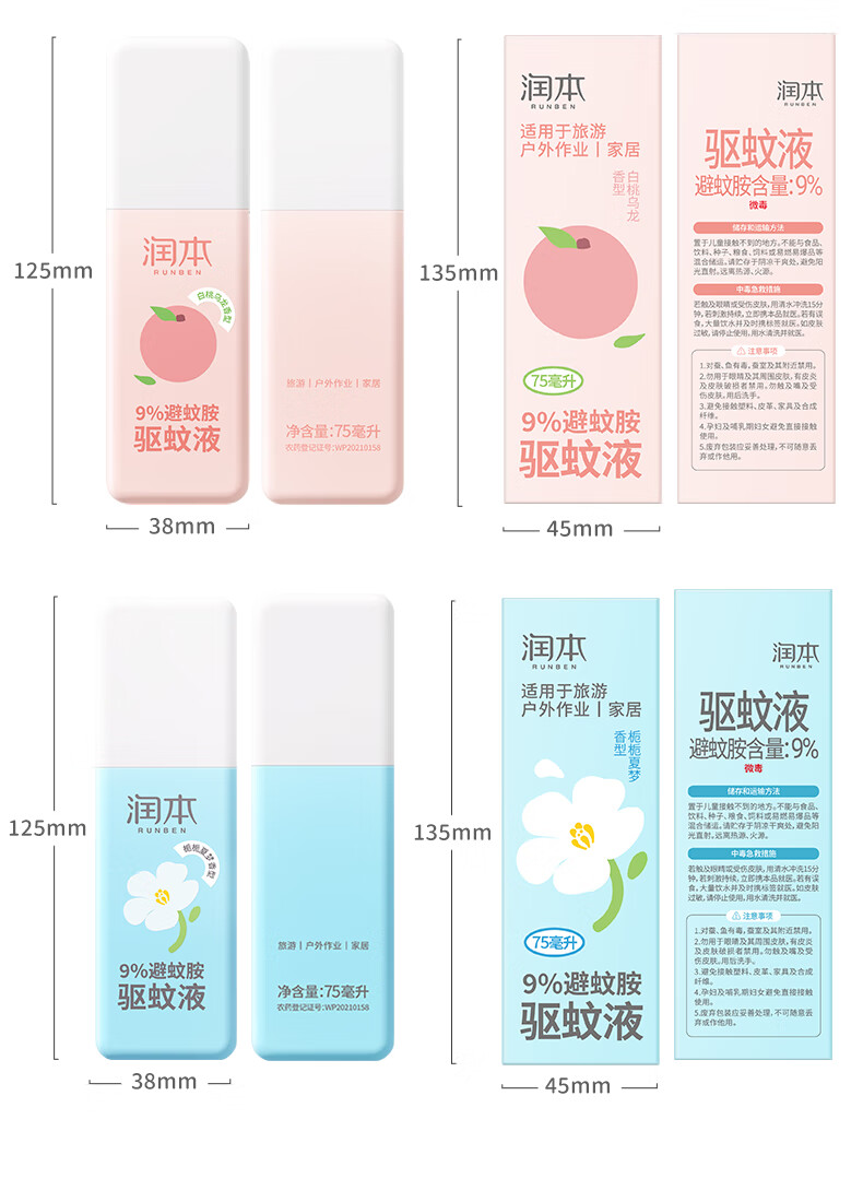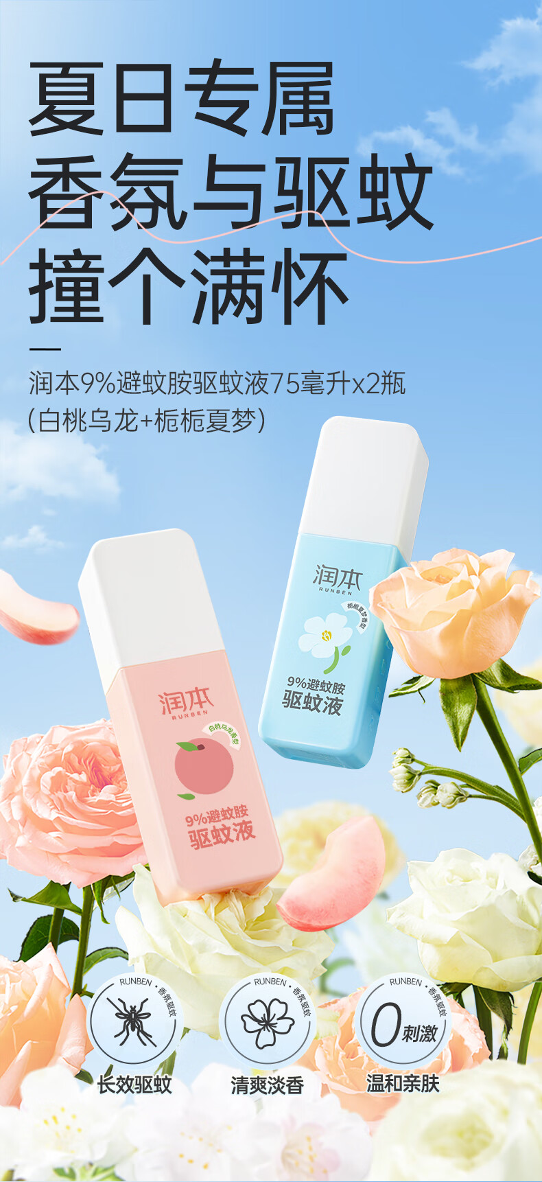 润本(RUNBEN) 9%避蚊胺驱蚊液 白桃+栀栀 75ml*2 混色(单位:组)