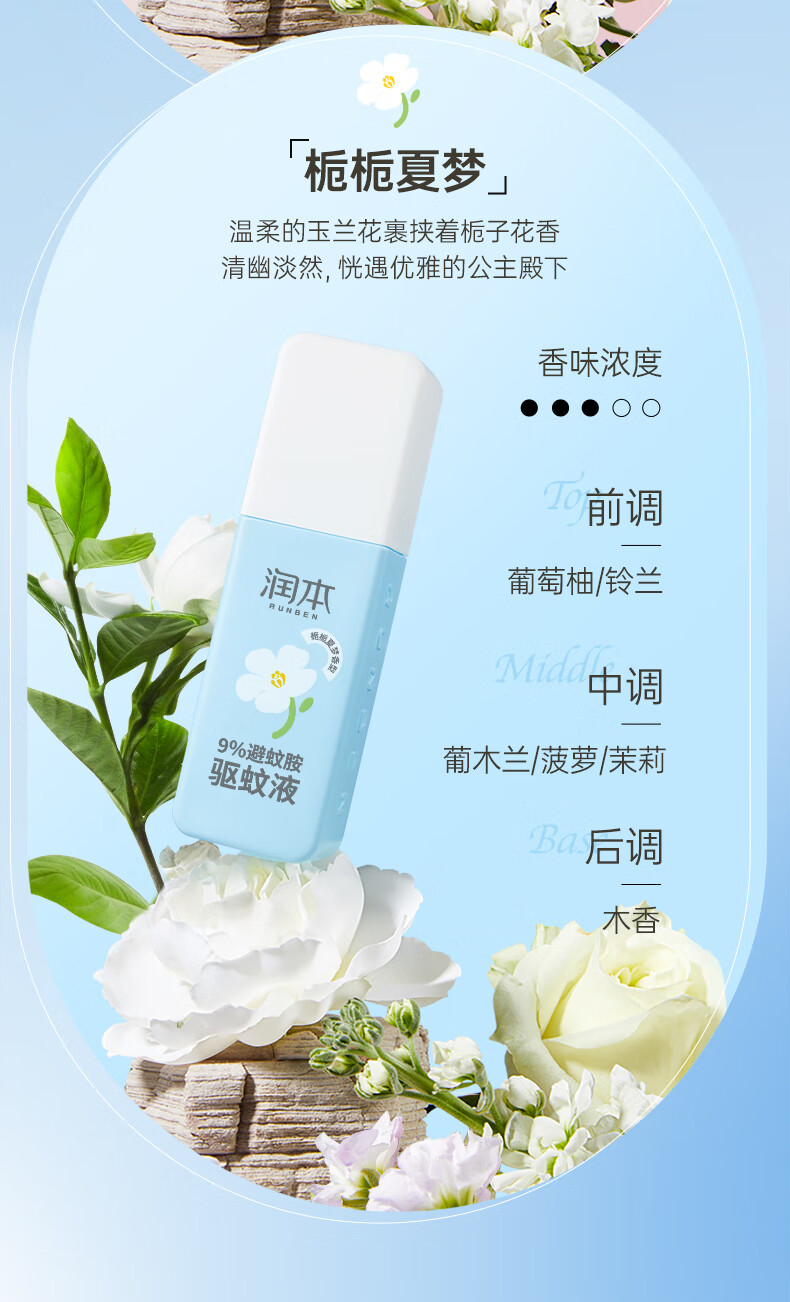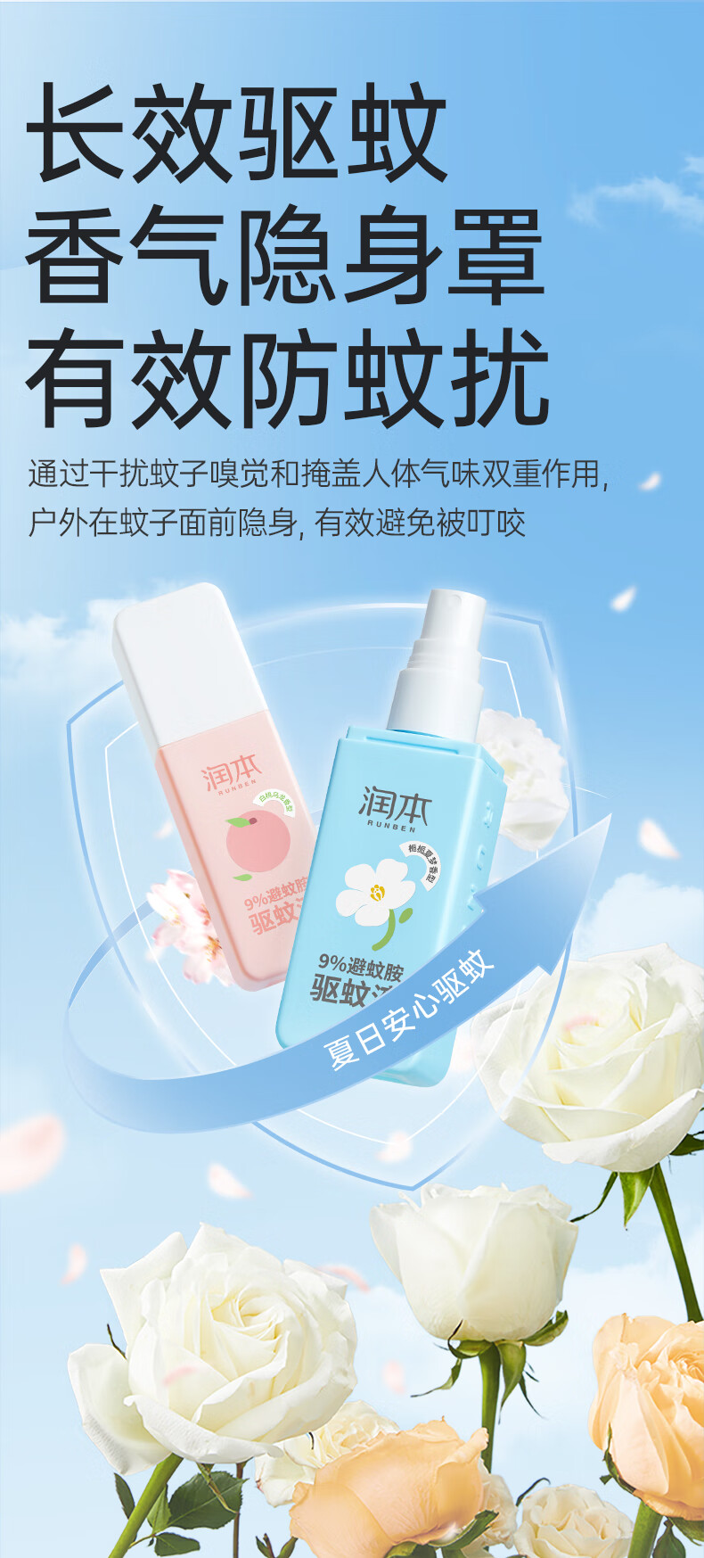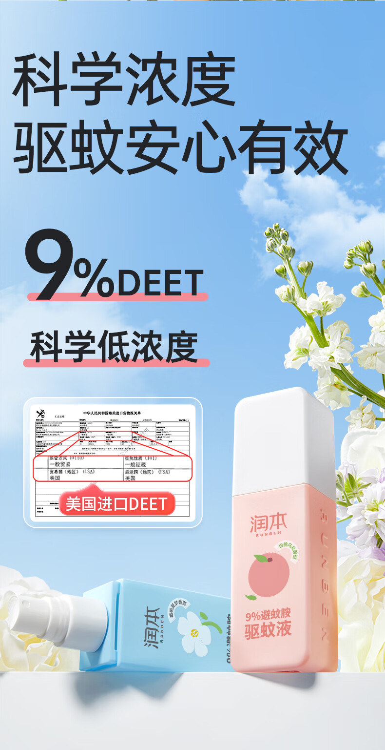 润本(RUNBEN) 9%避蚊胺驱蚊液 白桃+栀栀 75ml*2 混色(单位:组)